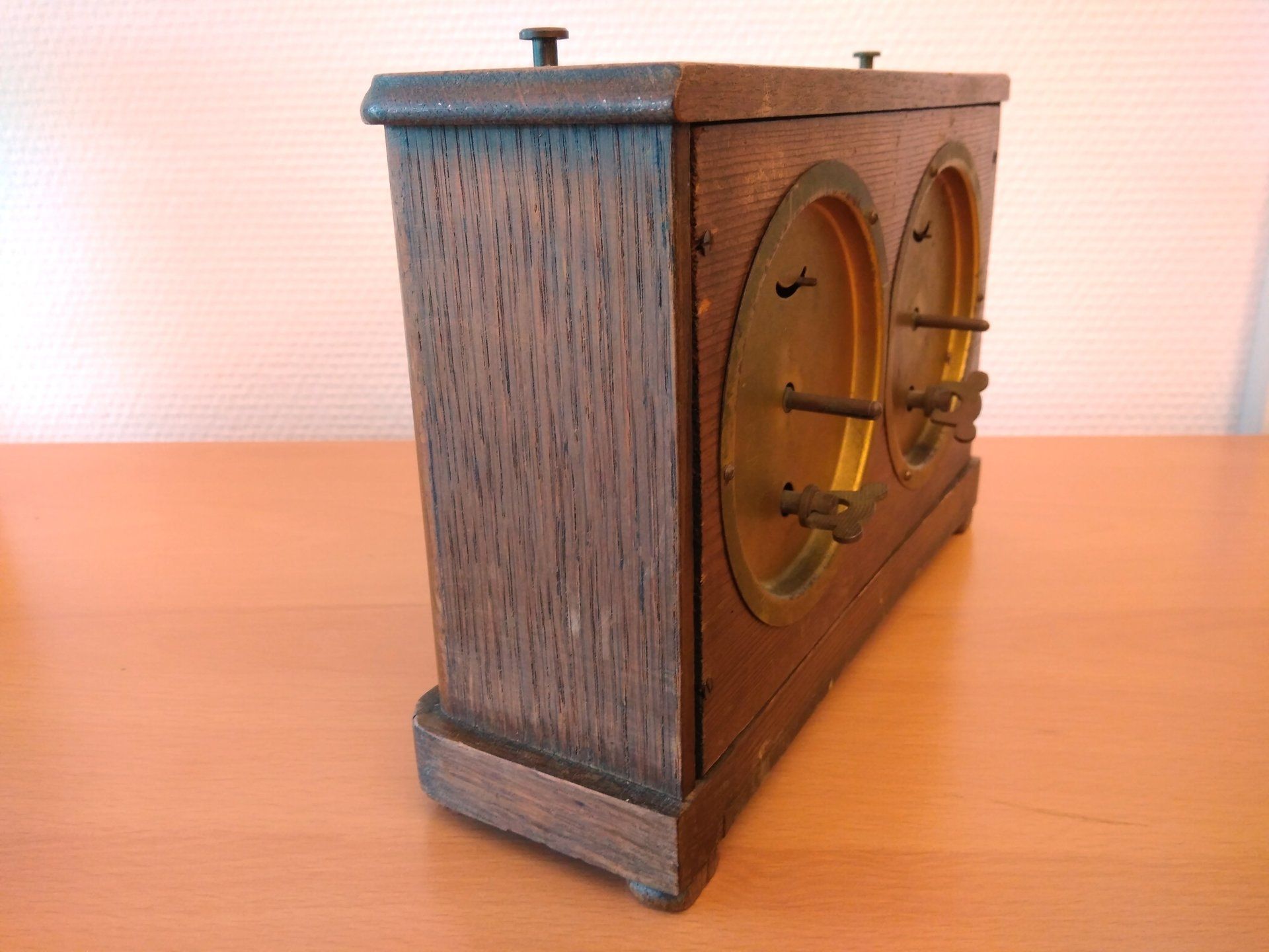 HAU clocks were distributed not only by HAU itself, but also by Jaques in England and various dutch distributors under the distributor's name, in this case, however, usually without the crossed arrows on the clock face. Likewise, HAU clockworks were frequently used for the production of other chess clocks of that era, because they were both reliable and rather cheap.
