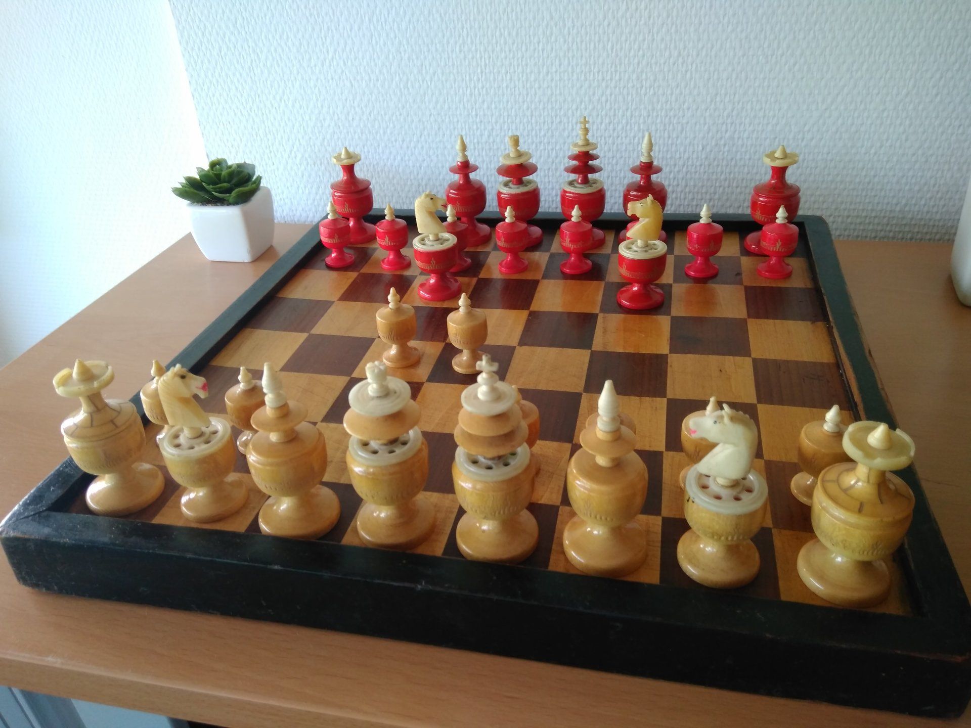 Normally, such set would not be my cup of tea, but for this one I made an exception, mainly because of the entire history behind the set. The pieces are made of wood and bone. I bought the set from a seller, who inherited the set from his late father. His father bought it in the 1950's in Paracho, which is a small city in the Mexican mountains. The style of the set is Tarascan, which fits to the aforementioned place of origin, as Tzintzuntzan, the former capital of the Mesoamerican Tarascan Empire, located on the shores of Lake Pátzcuaro, is only some 50 miles east of Paracho.