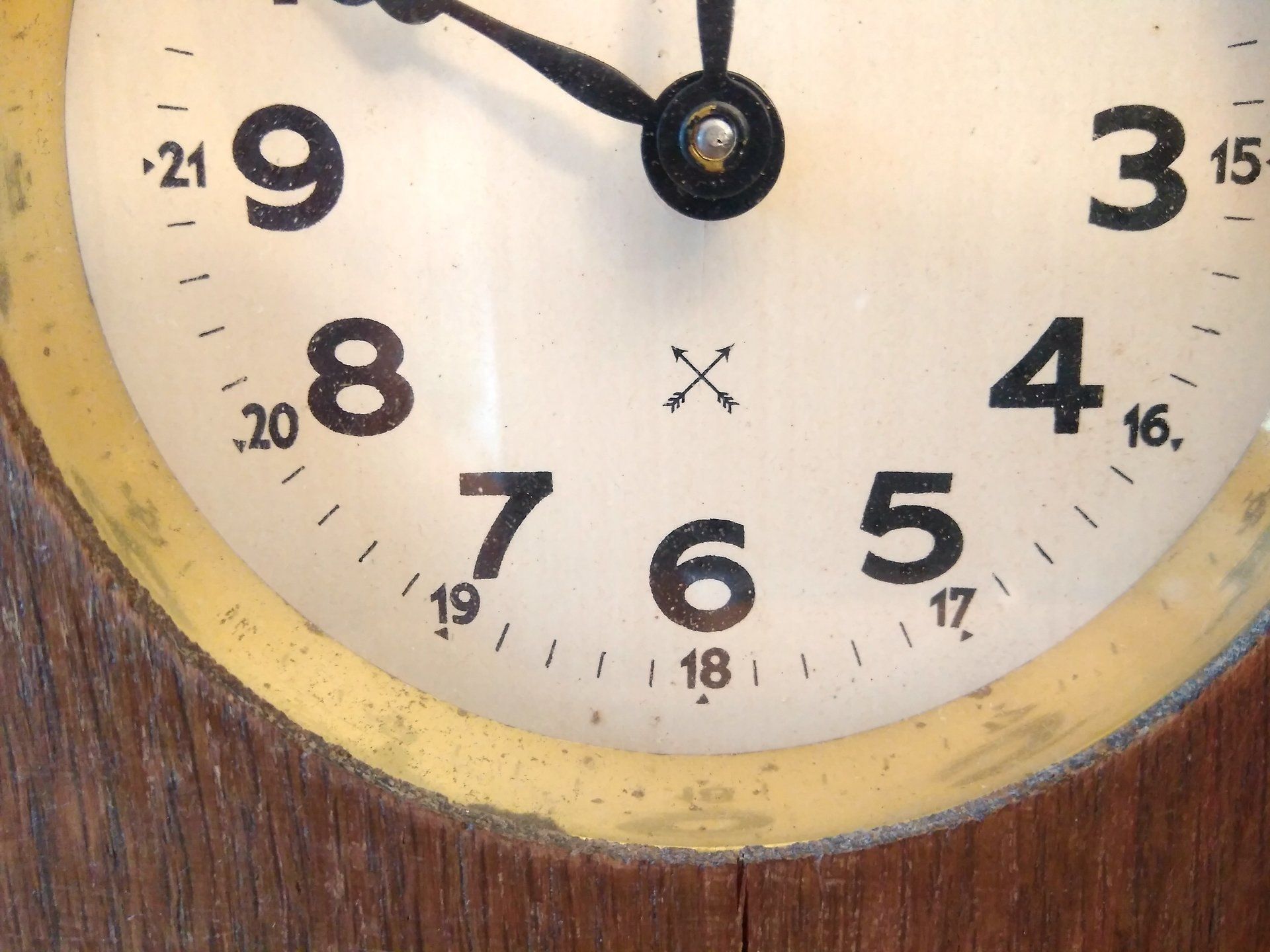 German chess clock by HAU, which is the abbreviation for "Hamburgisch-Amerikanische Uhrenfabrik". In English the clock is known under the name "HAC", i.e. "Hamburg American Clock Company". These clocks are also known under the name "Pfeilkreuz-Uhren", which refers to the crossed arrows on the front. Large wooden case, the design of which may have been used as a model for the later clocks produced by the Moscow Clockwork Company (notice the similar clock stopper on the front panel!).