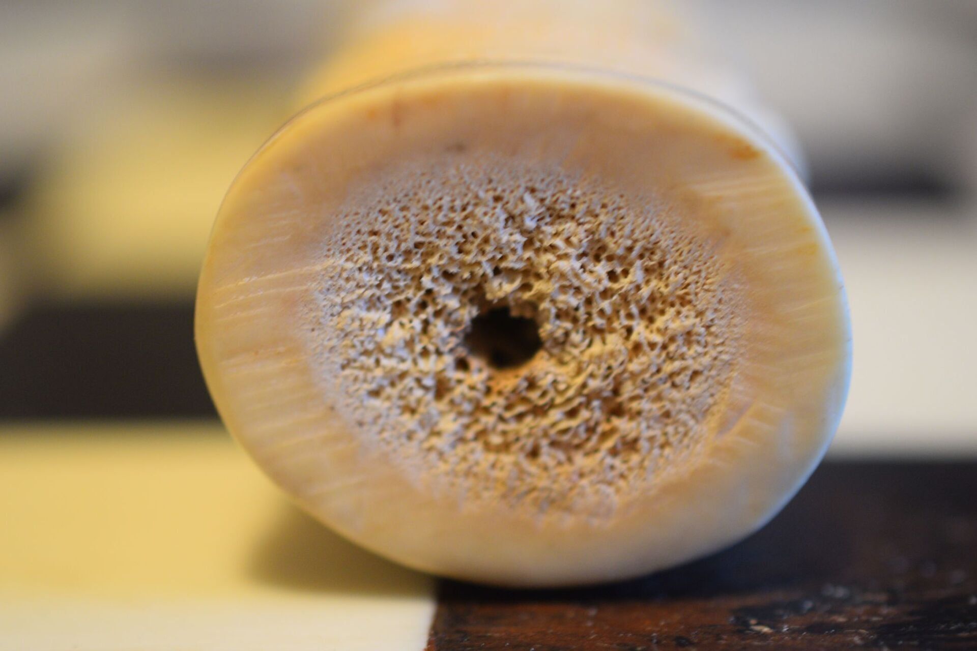 The pieces are displayed on a wooden board with the black squares made of ebony and the white squares and ornamental inlays made of bone.