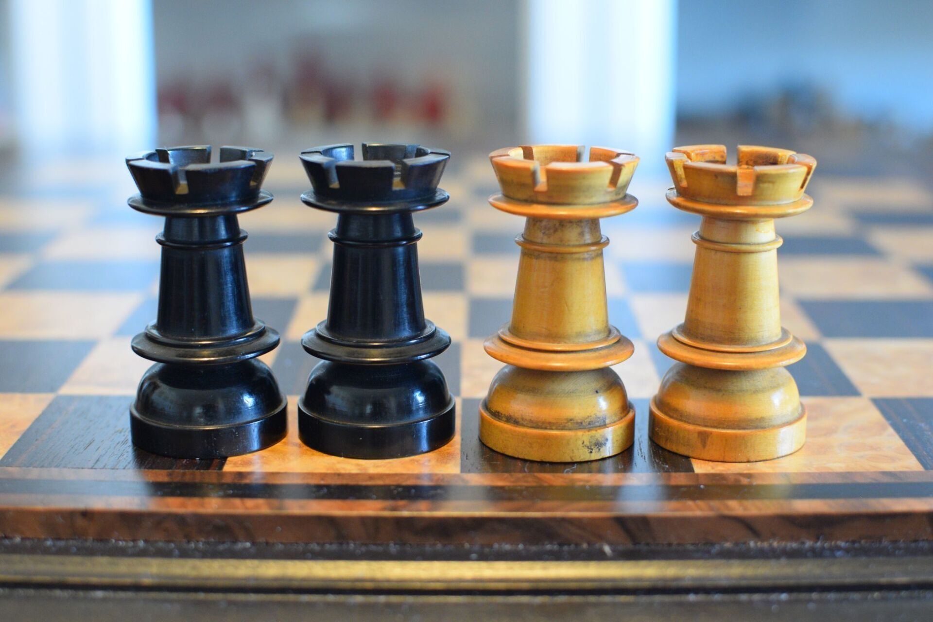 The pieces are turned and carved from boxwood and ebony. King size is 11cm. The pieces have a straight but upwardly tapering shaft and are very similar in style to the set shown in Peter Armit's article in image 8, a set which Peter attributes to F.H. Ayres.