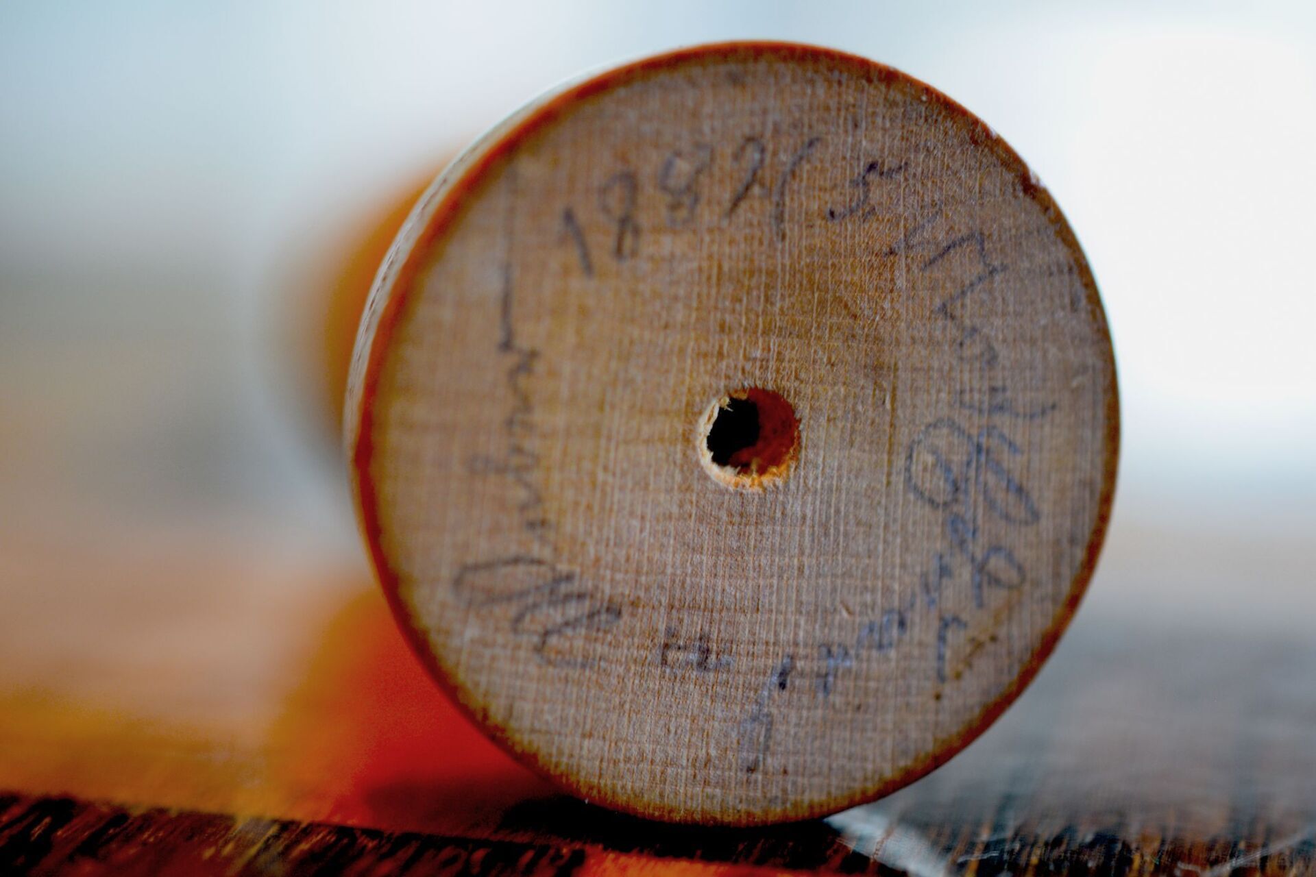 The similarity with sets of the Biedermeier period might lead to the conclusion that this set was made sometime in the first half of the 19th century, but this assumptions is in this case unjustified. Several pieces have pencil inscriptions written on the bases in Kurrent, which is also known as "German script" or "German cursive". Two of these inscriptions show the date 15 March 1882 ("15. März 82" and "1882 / 5. März"). Further, the same pieces are inscribed with a name, which to me reads "Eduard Kleber" or in the inverted version with the last name first "Kleber Eduard".