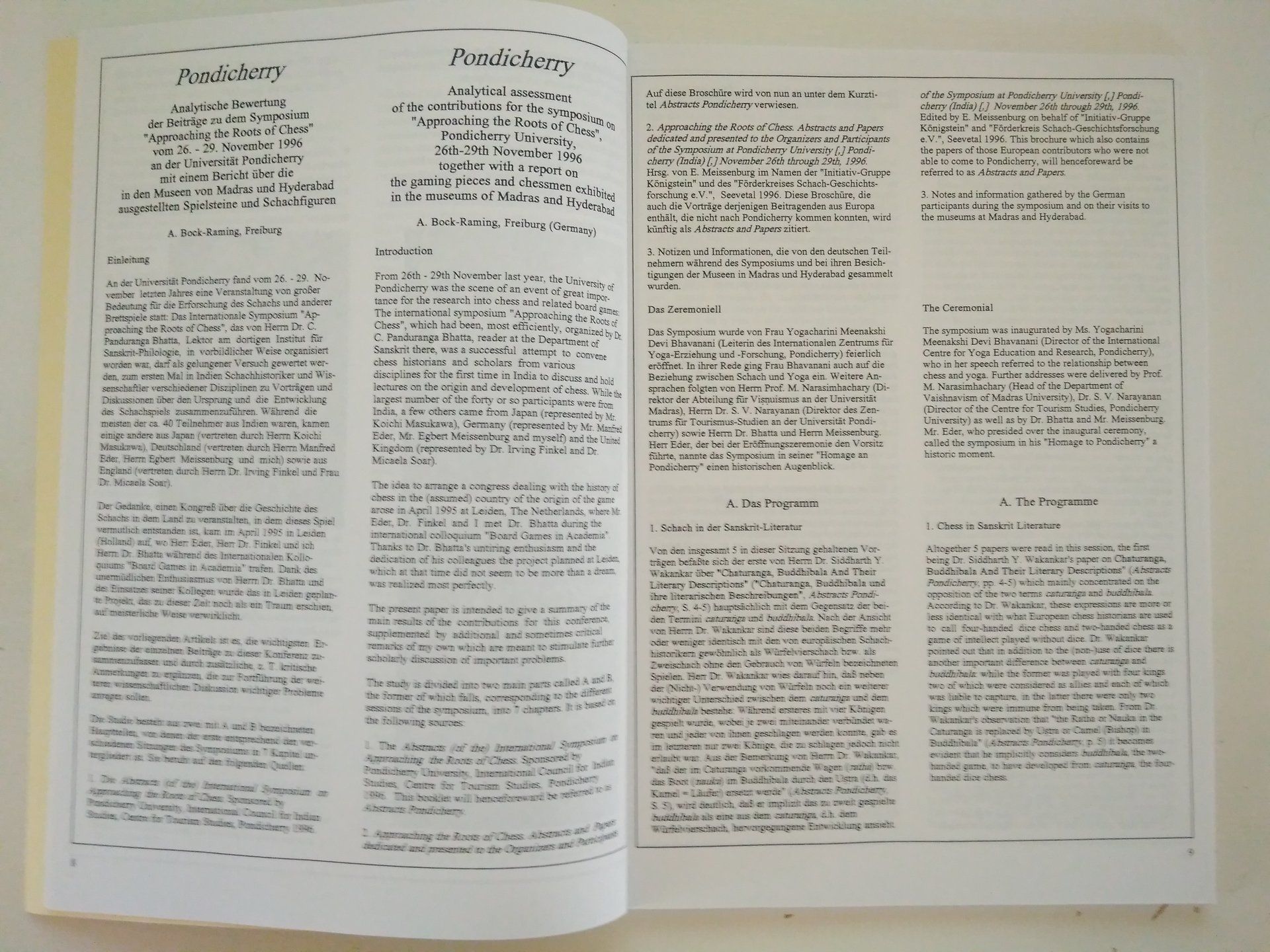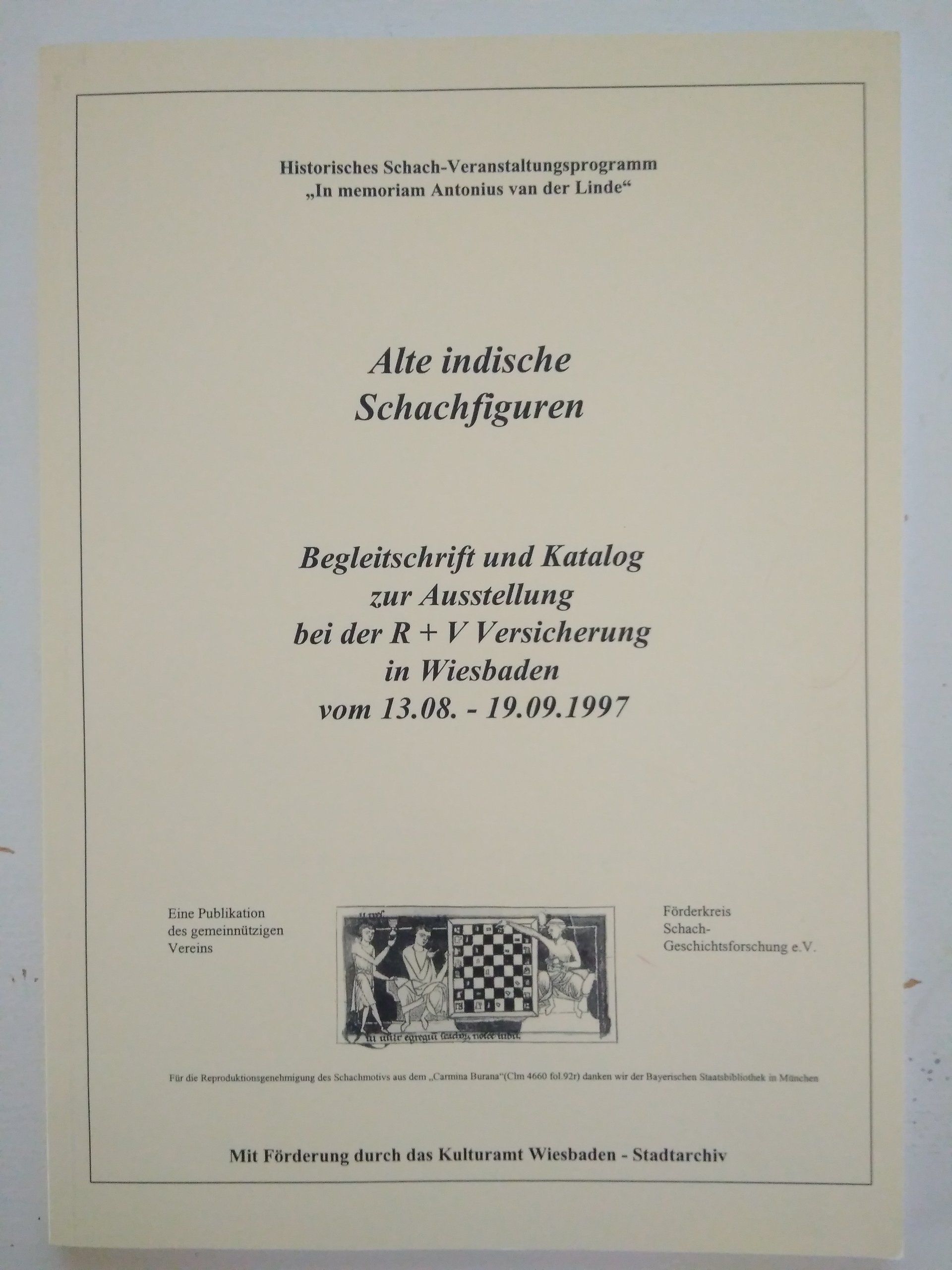 A very rare publication of an accompanying paper and catalogue of an exhibition on antique Indian chess sets hosted by R+V Versicherung, Wiesbaden, from August 13th to September 19th, 1997.