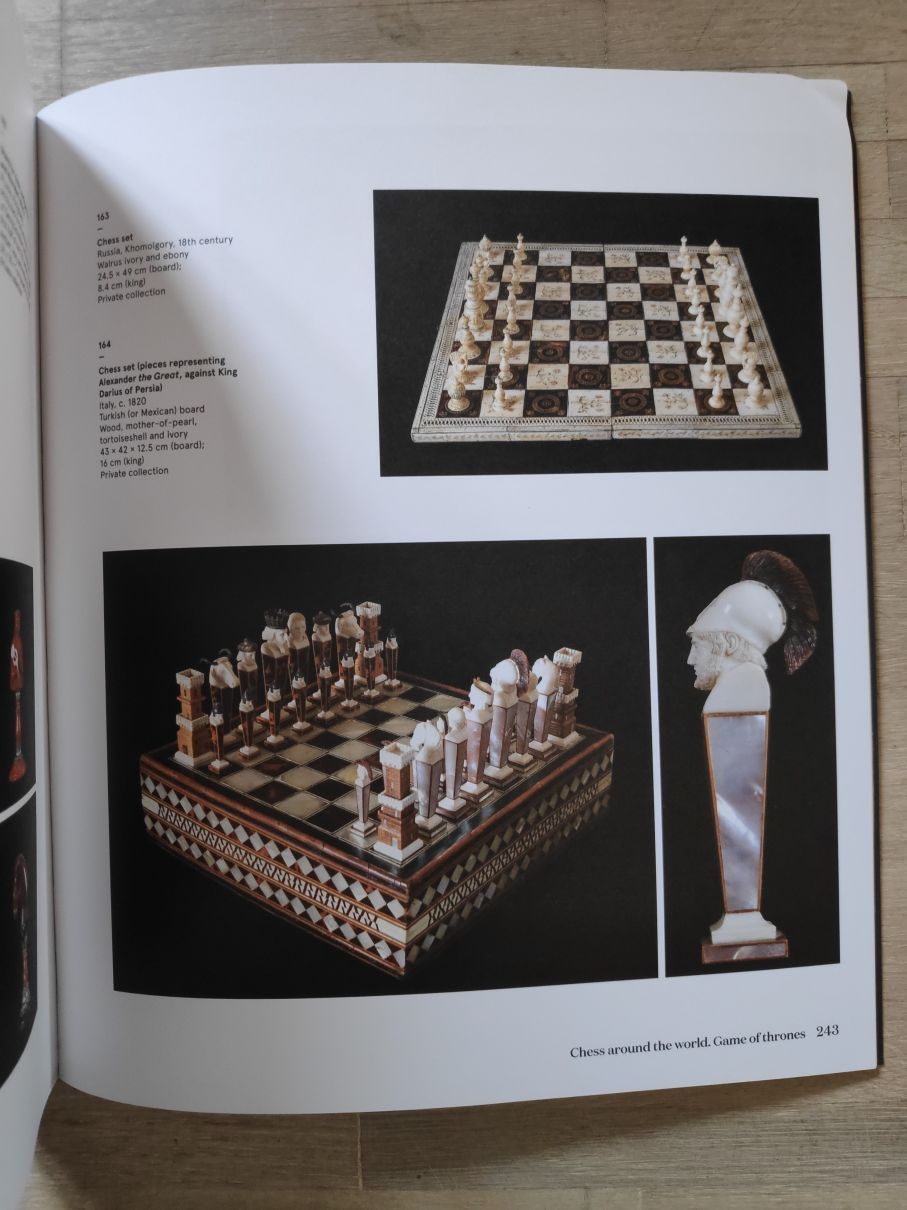 While the exhibition was not dedicated to chess alone, the chess sets and boards exhibited are vivid proof that the above mentioned collection rank among the top chess collections of the world. Apart from wonderful pictures a wealth of information is provided.
