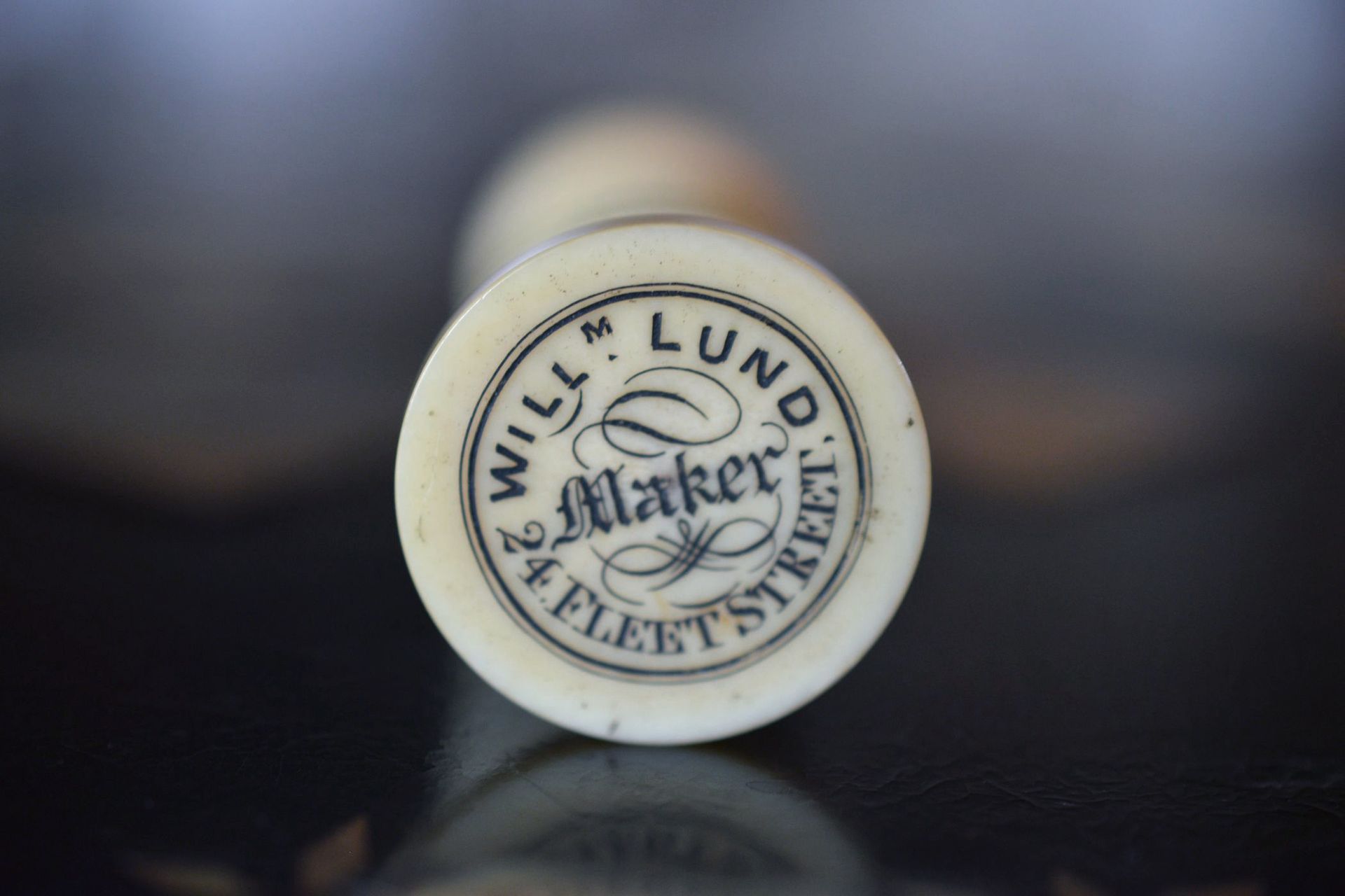 William Lund set up a manufactory and shop at 24 Fleet Street in London in 1835. After the death of his father, Thomas Lund, in 1845, William additionally took over his father's business and at the same time expanded his own shop to include 23 Fleet Street. The stamp, which only mentions 24 Fleet Street, therefore probably indicates that the set was made between 1835 and 1845.
