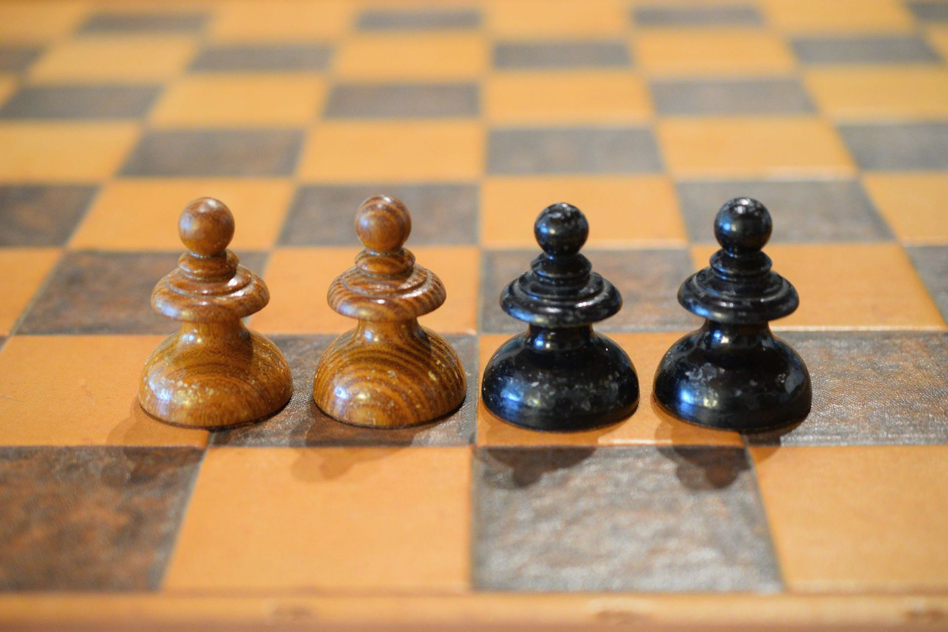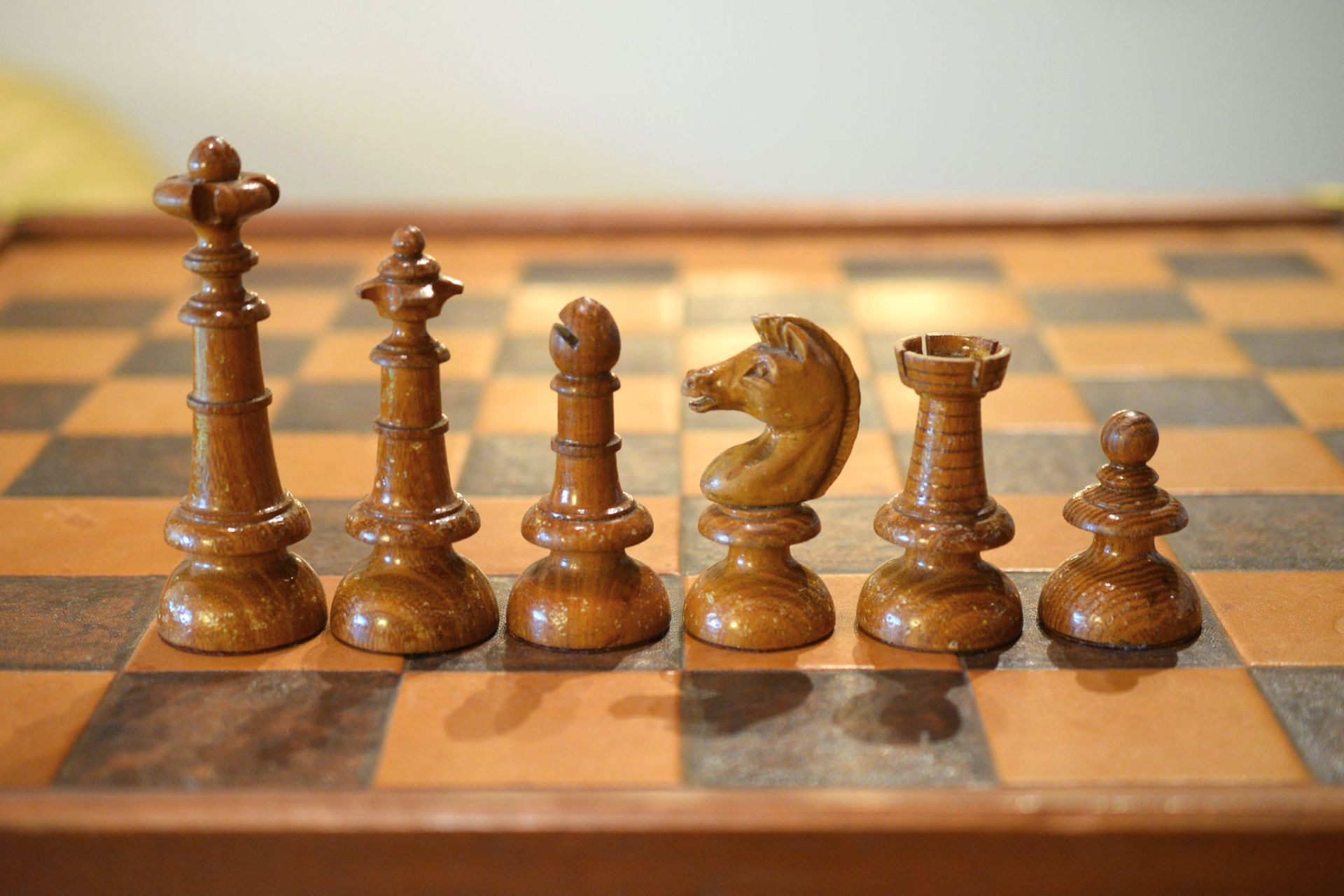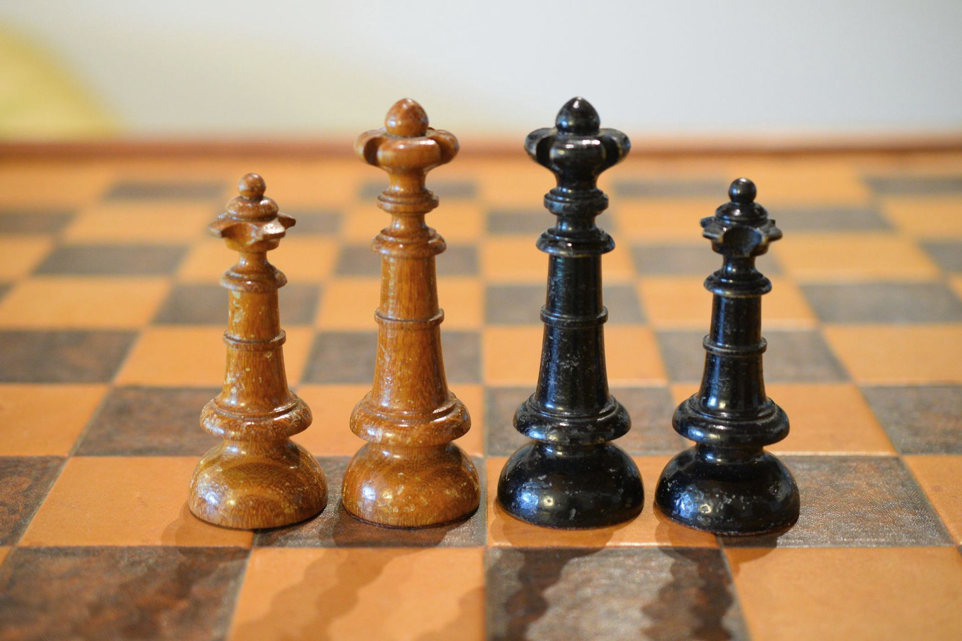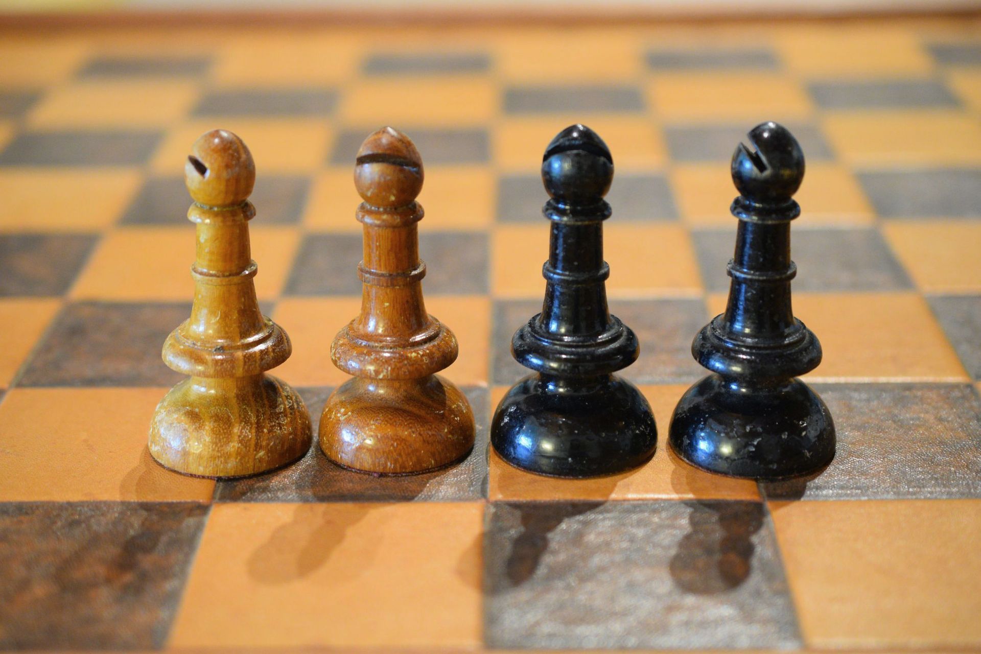This is a chess set made by E. H. Schütze presumably in the late 19th century. The pieces with a king size of 10.2 cm are made of wood, one side lacquered in brown, the other side in black. The design reminds slightly of the Austrian Coffee House style. The peculiar design of the knights, but also the slender shape of the rooks is noteworthy. The set came in the original carton box with stamps of E. H. Schütze on the inside of the lid and the bottom of the box.