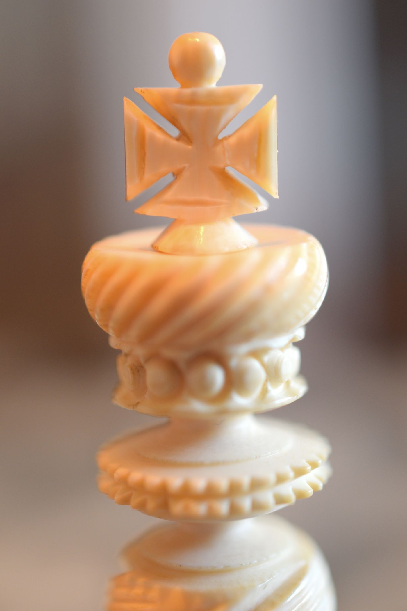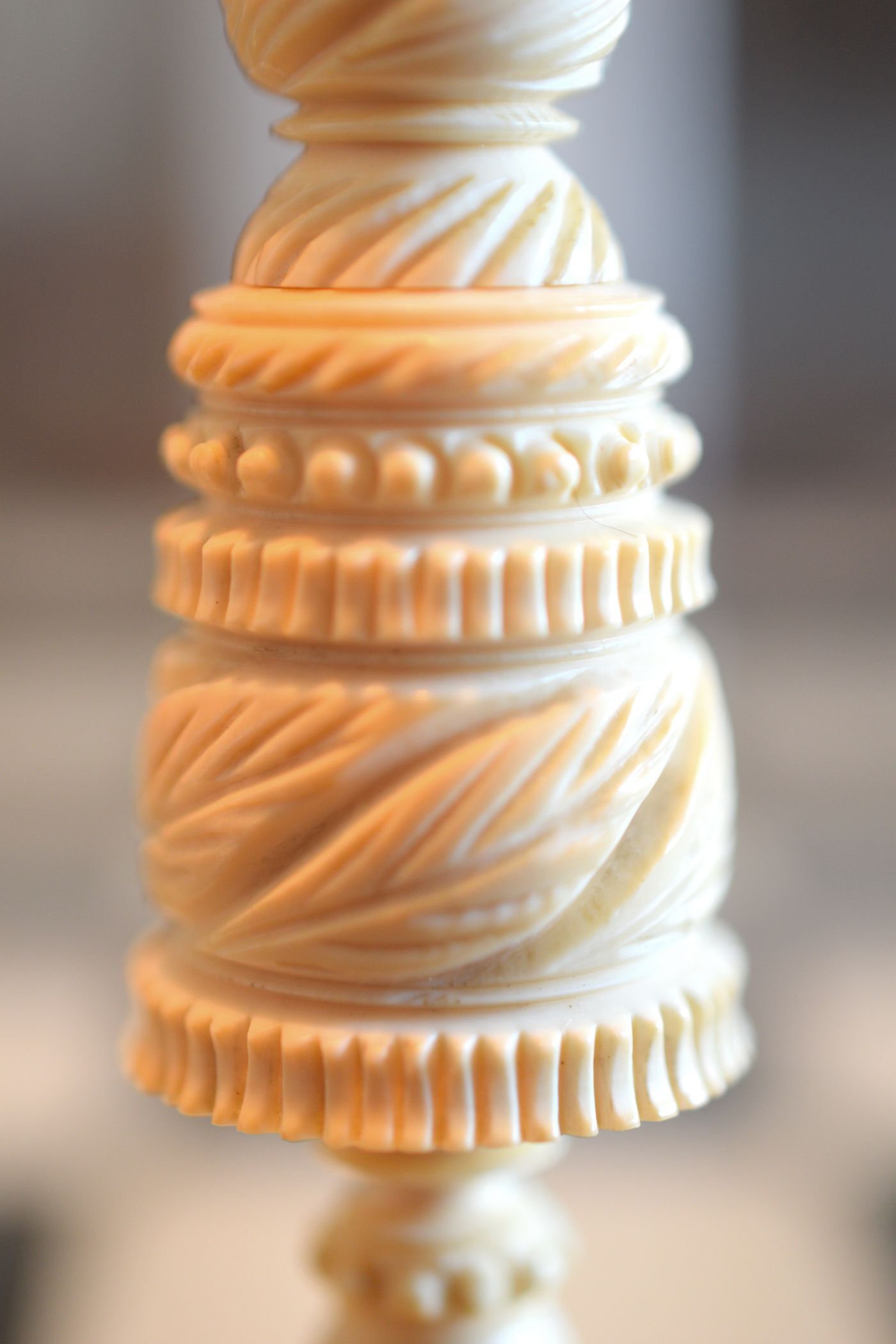 English Ornamental "Barleycorn" Ivory Chess Set, mid-19th century