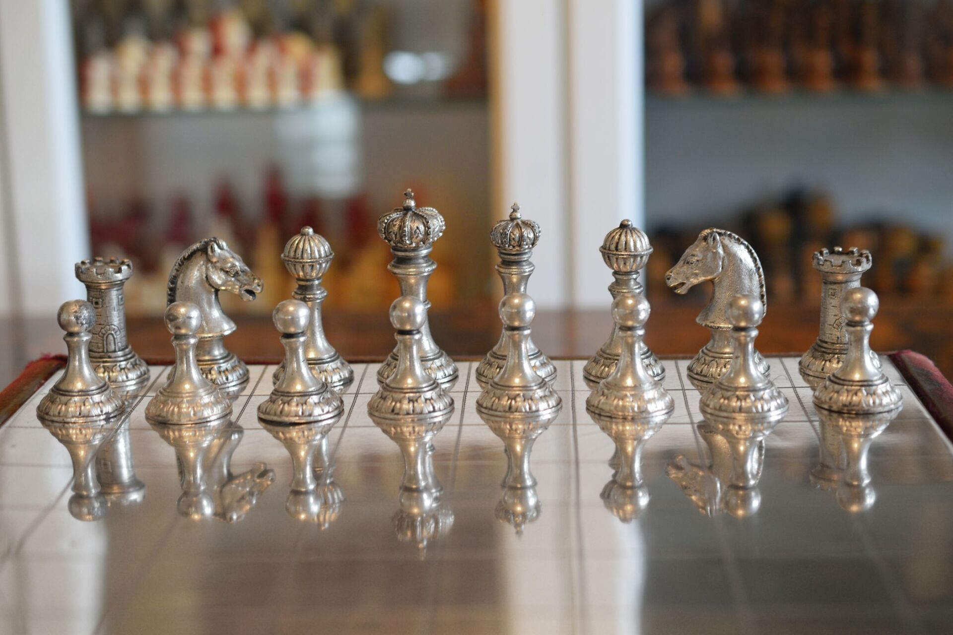 German Metal Chess Set by Württembergische Metallwarenfabrik (WMF), 1903