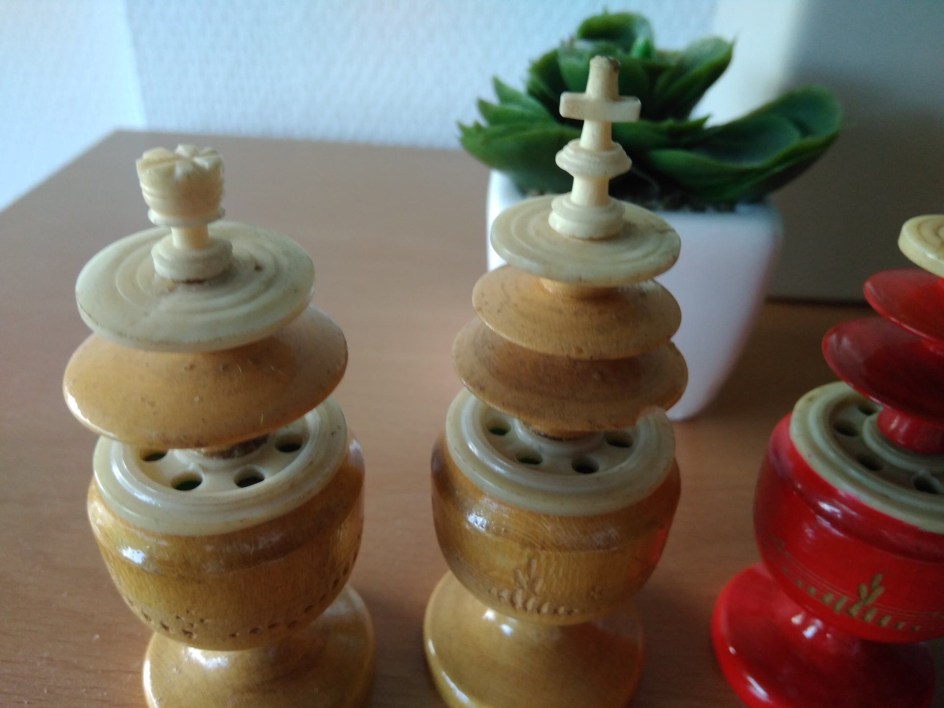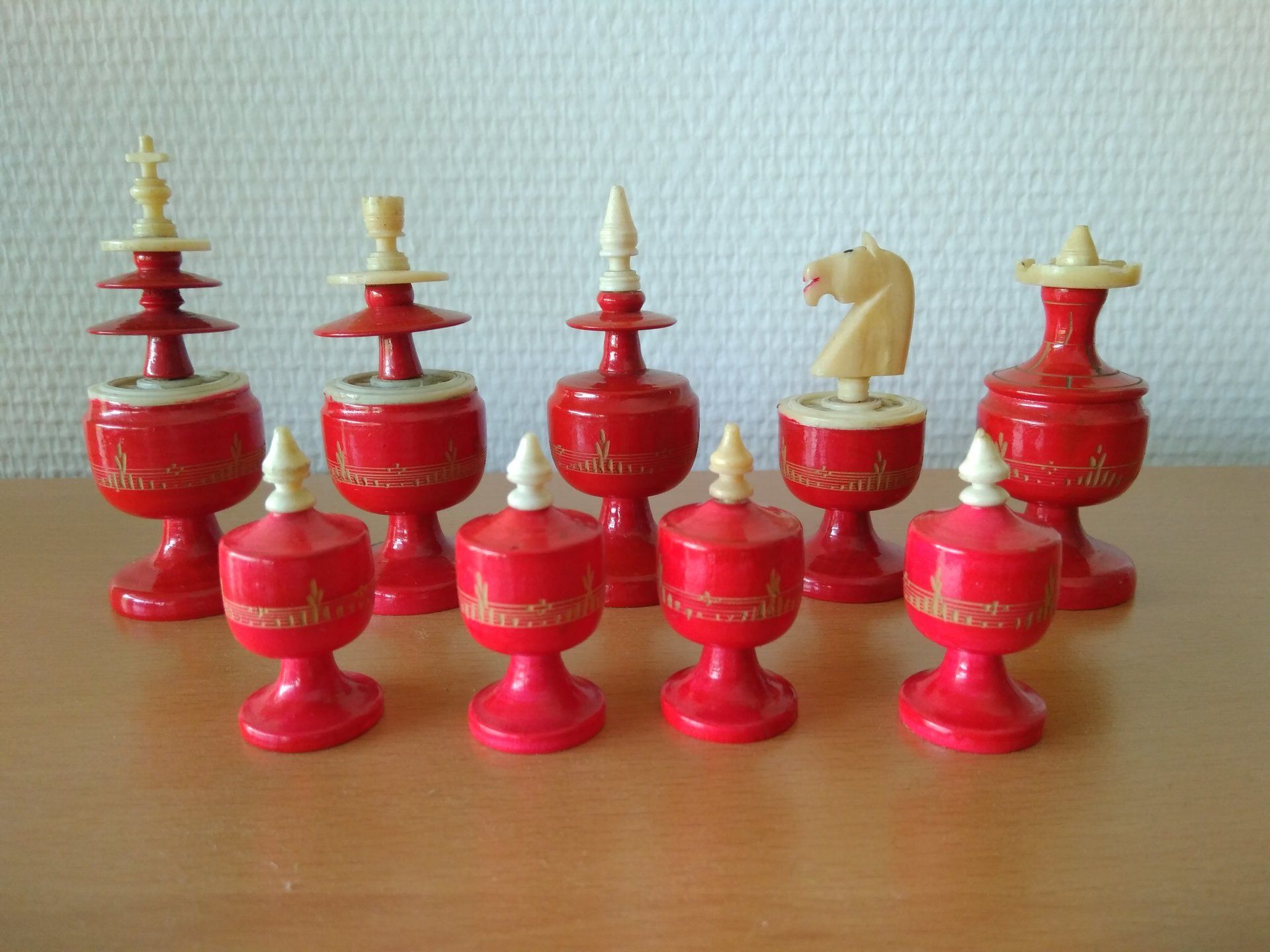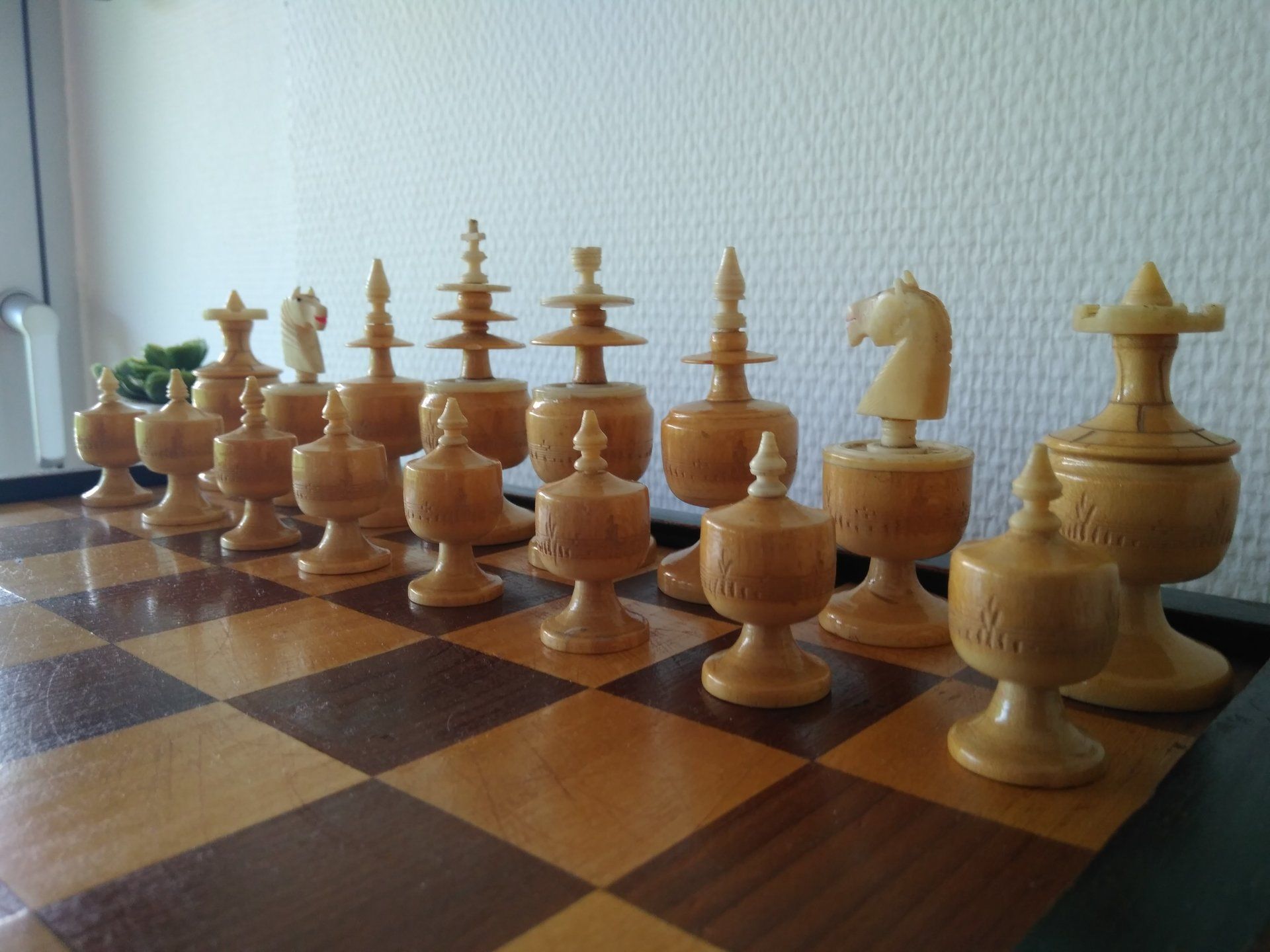 Normally, such set would not be my cup of tea, but for this one I made an exception, mainly because of the entire history behind the set. The pieces are made of wood and bone. I bought the set from a seller, who inherited the set from his late father. His father bought it in the 1950's in Paracho, which is a small city in the Mexican mountains. The style of the set is Tarascan, which fits to the aforementioned place of origin, as Tzintzuntzan, the former capital of the Mesoamerican Tarascan Empire, located on the shores of Lake Pátzcuaro, is only some 50 miles east of Paracho.