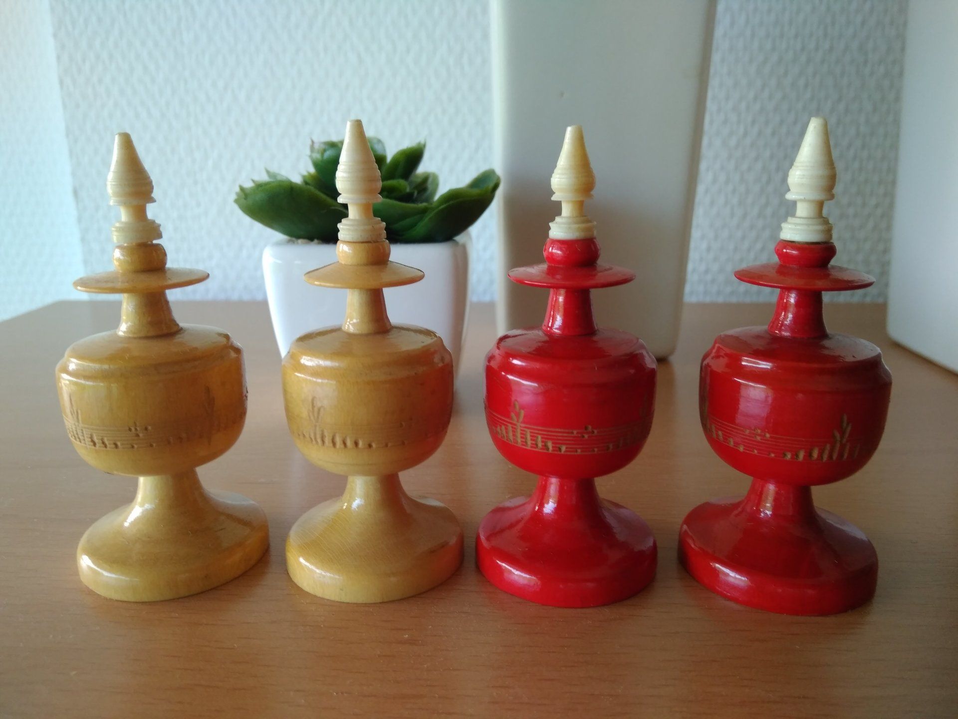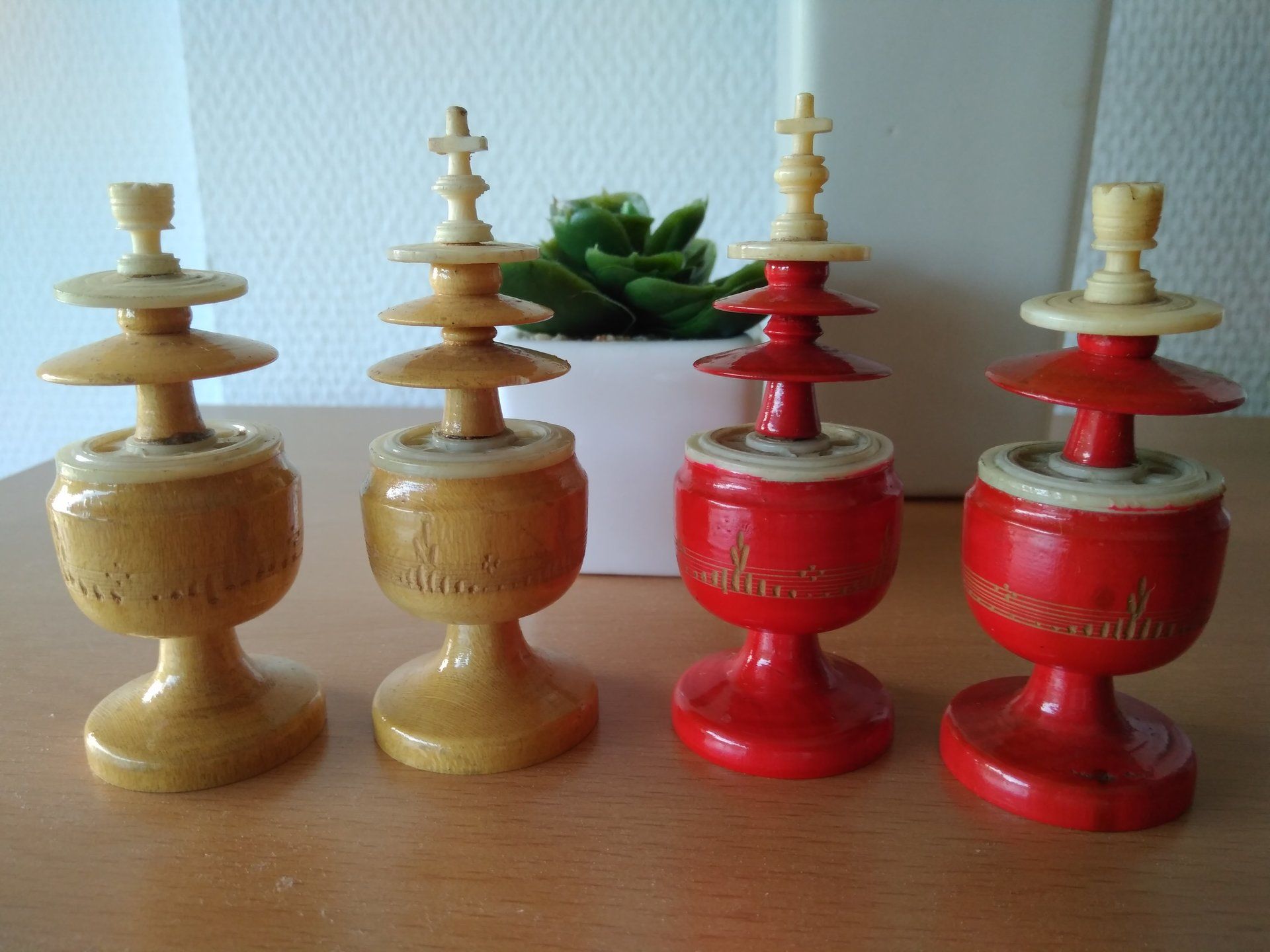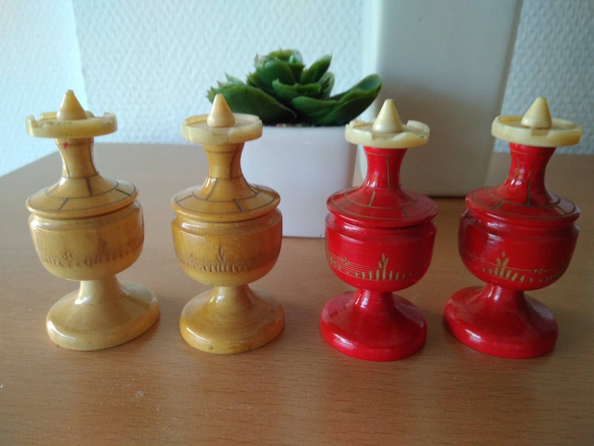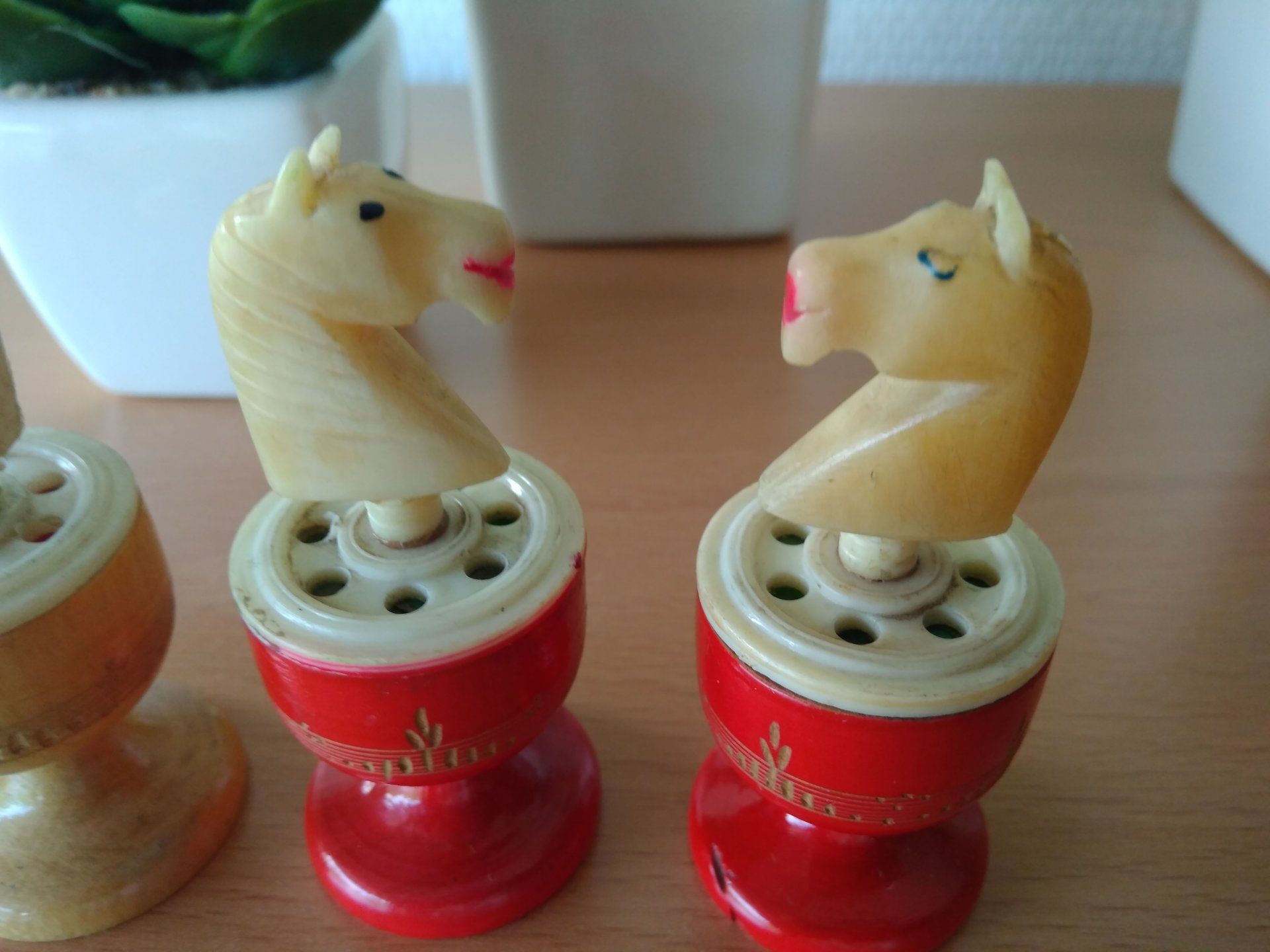 Normally, such set would not be my cup of tea, but for this one I made an exception, mainly because of the entire history behind the set. The pieces are made of wood and bone. I bought the set from a seller, who inherited the set from his late father. His father bought it in the 1950's in Paracho, which is a small city in the Mexican mountains. The style of the set is Tarascan, which fits to the aforementioned place of origin, as Tzintzuntzan, the former capital of the Mesoamerican Tarascan Empire, located on the shores of Lake Pátzcuaro, is only some 50 miles east of Paracho.