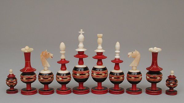 Sets of similar style (albeit much more elaborately crafted) are to be found in the collection of the Metropolitan Museum of Art in New York and the Maryhill Museum of Art in Goldendale/WA. I included a picture of the website of the MET as well as a scan from Colleen Schafroth's "Sculptures in Miniature: Chess Sets from the Maryhill Museum of Art". According to the information given there, such sets were produced by Tarascan natives until 1944.