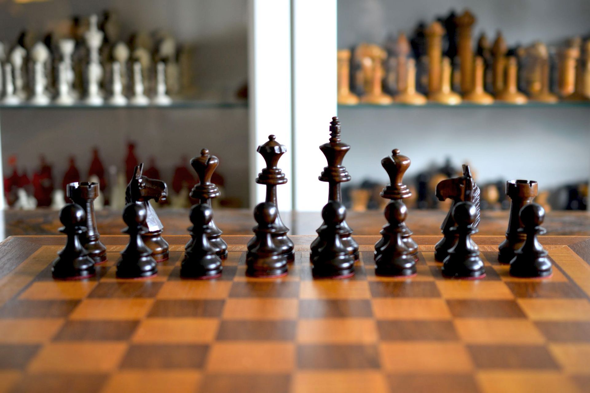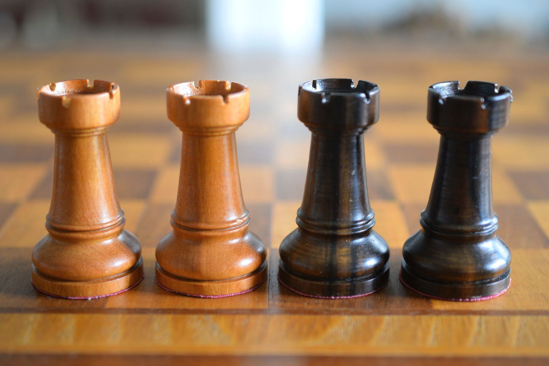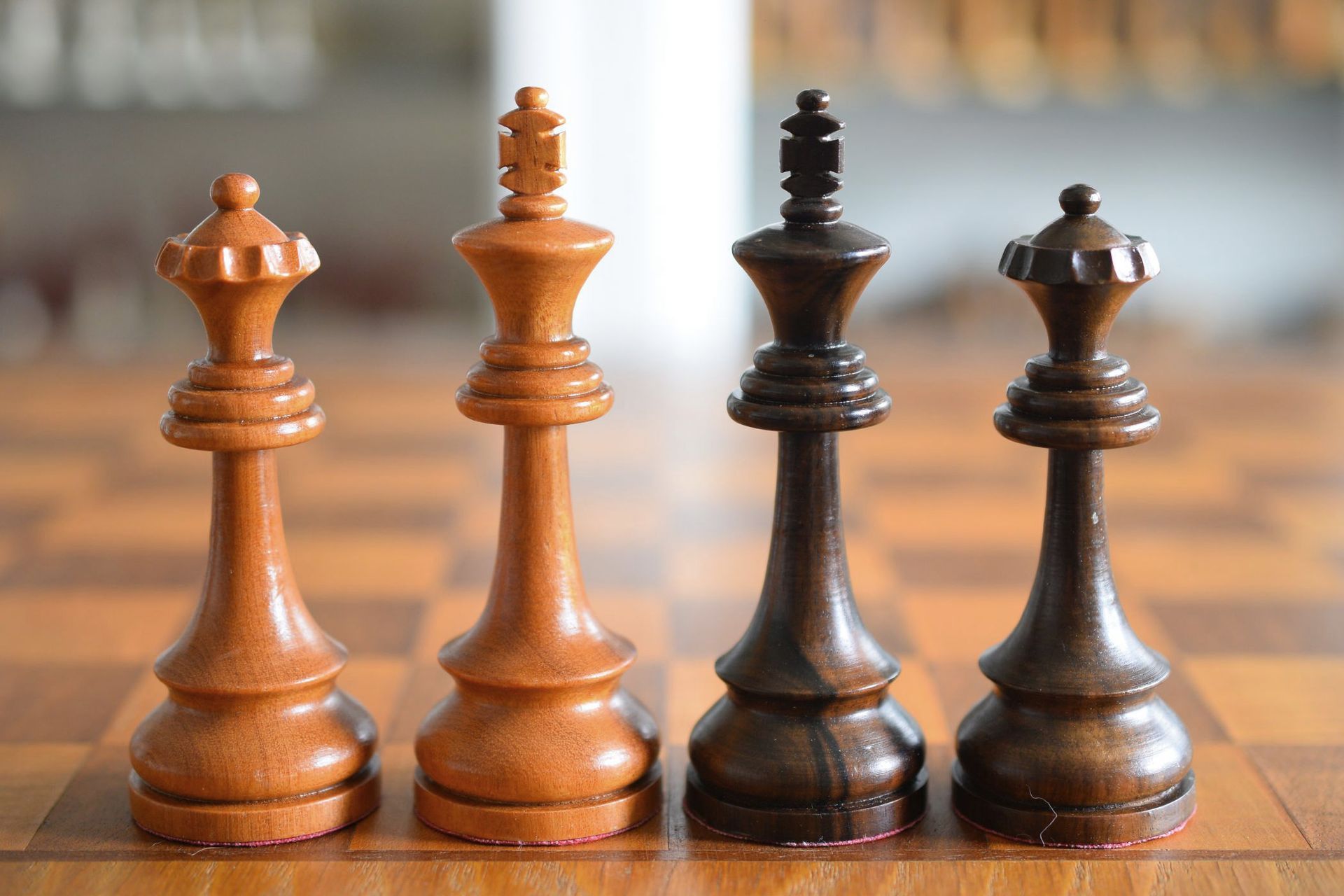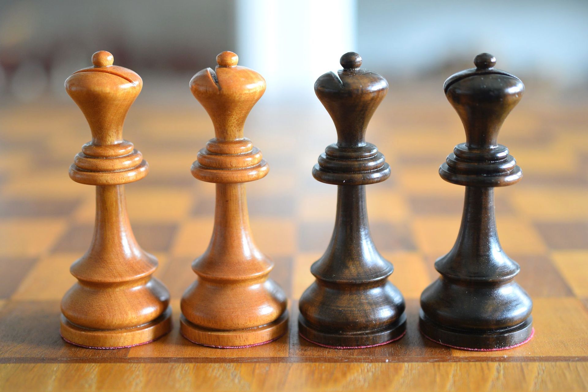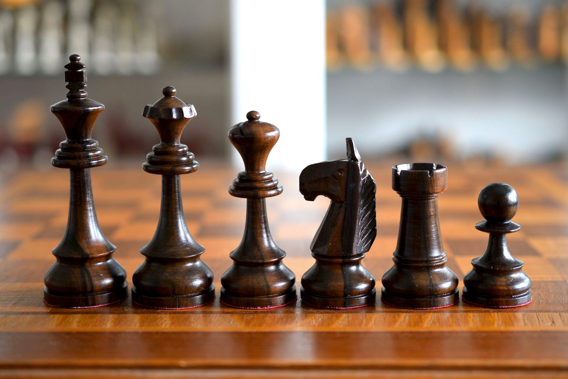 Here is probably my most elegant Philippine Staunton chess set in pristine condition with a king size of approximately 10 cm. In contrast to the usual Philippine Staunton sets, the pieces in this one are very slender with rather slim stems and triple collars on the kings, queens and bishops. Also, the crosses on the kings differ from the so called "rosary cross" usually seen on Filipino sets. The most outstanding pieces are the bishops, which have extremely unusual heads. Despite being quite modern, sets of this type are somewhat rare. I have only seen this type about 4-5 times so far and only know very few collectors who have a set like this in their collection. The last picture shows the beautiful kamagong grain on the black side pieces.