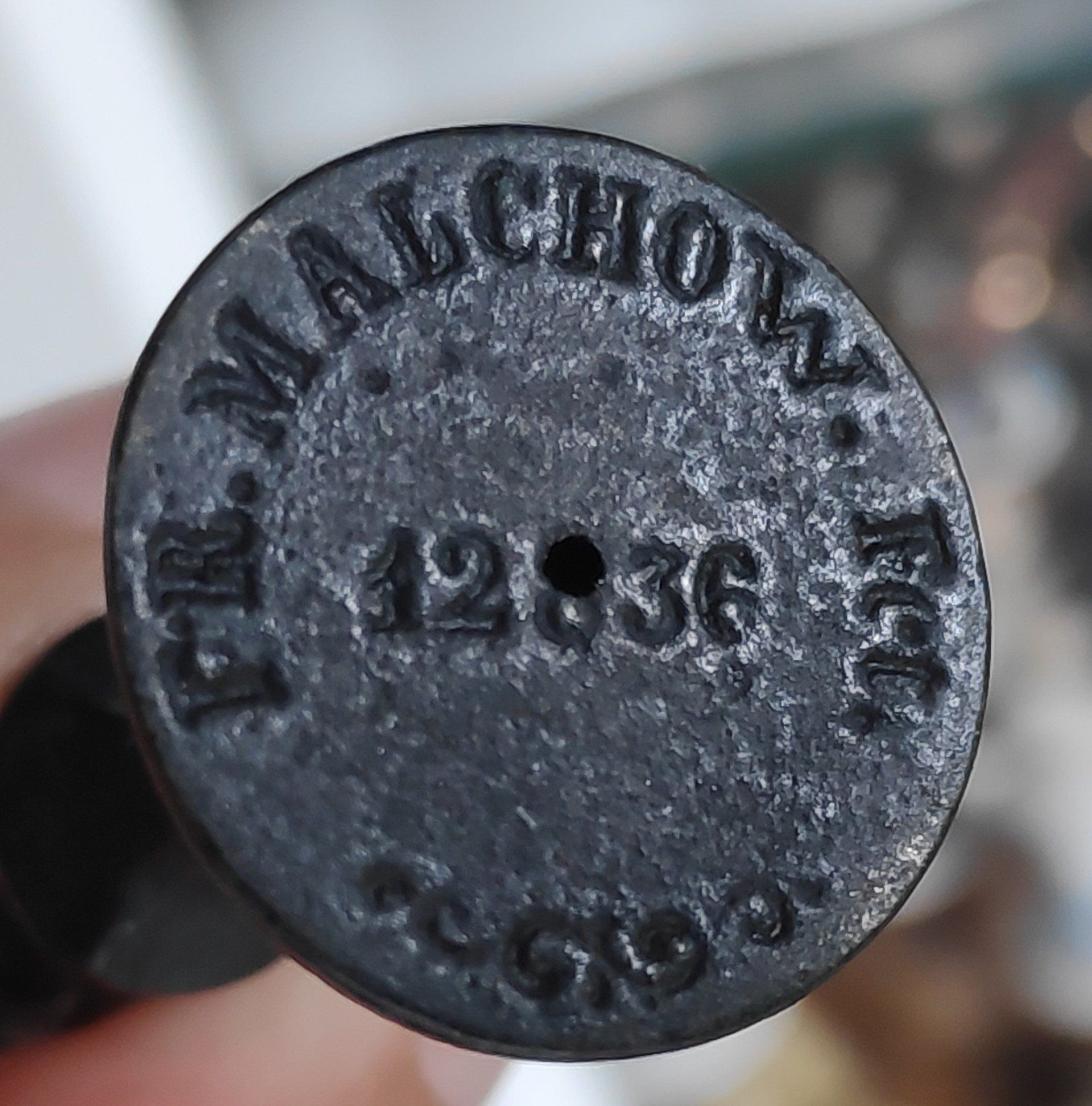 A chess set made of cast iron, which can be attributed to the foundry of E.G.Zimmermann in Hanau. It dates back to ca. 1850. The base of the black king is imprinted with "FR. MALCHOW Fct." and "12636" or "12836". The imprint "Fct." stands for the latin "factum", which indicates that the casting was designed by "FR. MALCHOW". This again refers to the artist Johann Friedrich Malchow (1815-1886), born in Fürstenwalde and later residing in Berlin, where he was working for the Royal Iron Foundry and some private foundries, in particular that of A.R.Seebass. The Seebass foundry moved to Hanau around 1839/1840 and soon after that entered into an association with the foundry of E.G.Zimmermann, likewise based in Hanau. In 1842 Zimmermann and Seebass ended their cooperation and Seebass moved the foundry to Offenbach. From that time on Friedrich Malchow must have moved from Berlin to Hanau and must have exclusively worked for Zimmermann, as an entry in the 1853 Hanau address book suggests, which reads: "J.F.Malchow, modeller in the iron foundry of E.G.Zimmermann" (cf. Peter Christian Reuel / Thomas H. Thomsen, Cast Iron Chess Sets by E.G. Zimmermann, Cast Iron and Chess, 2006). Many of the castings from that time made by Zimmermann bear his name and sometimes his signature.