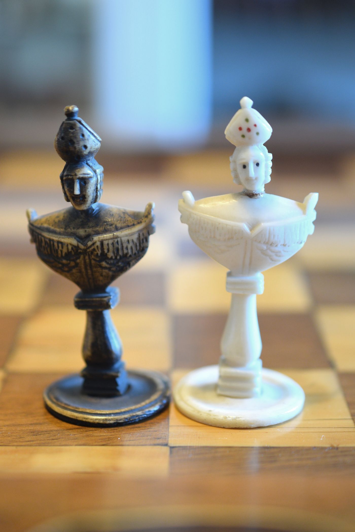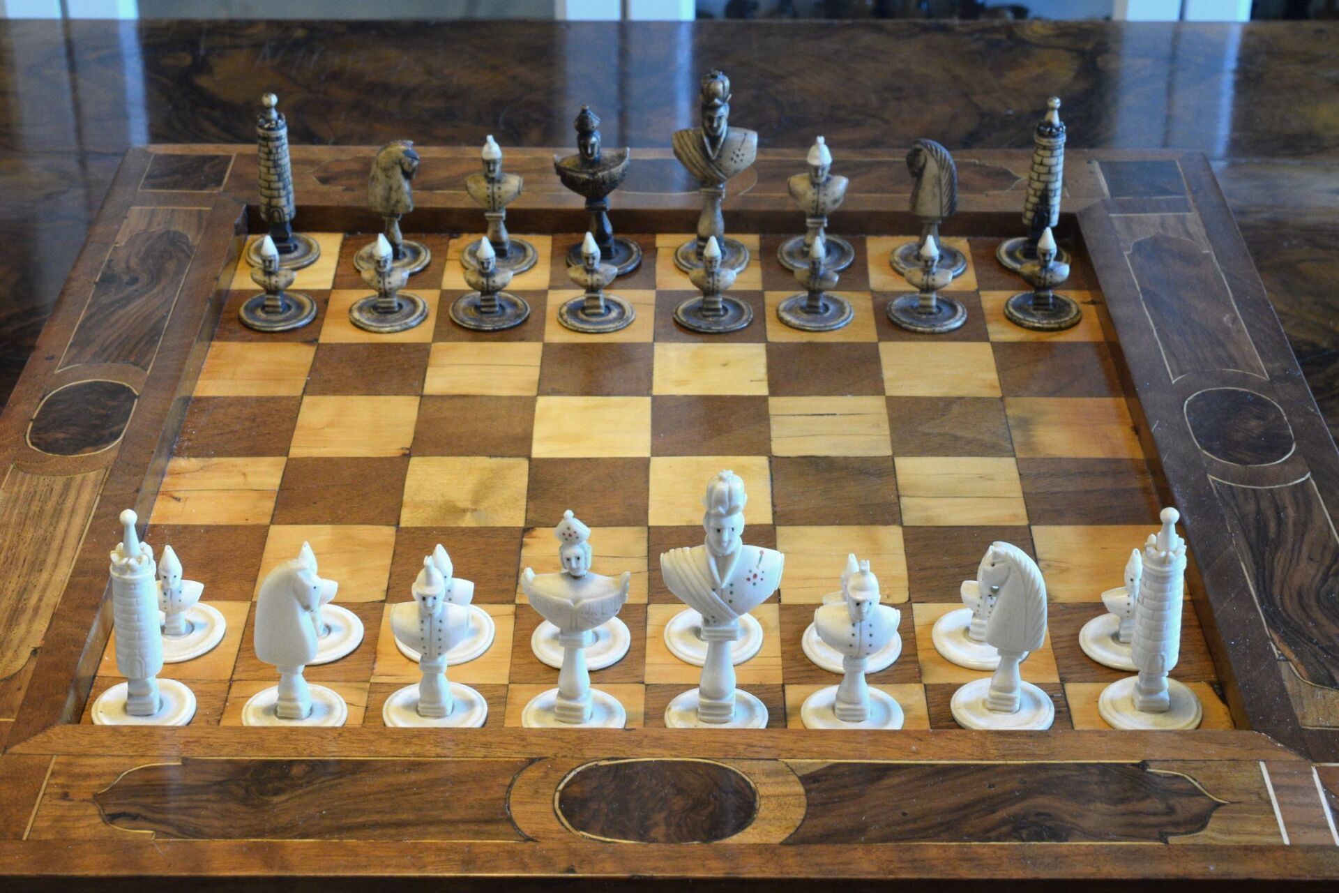 French / German Bone Bust Chess Set, ca. 1880-1920