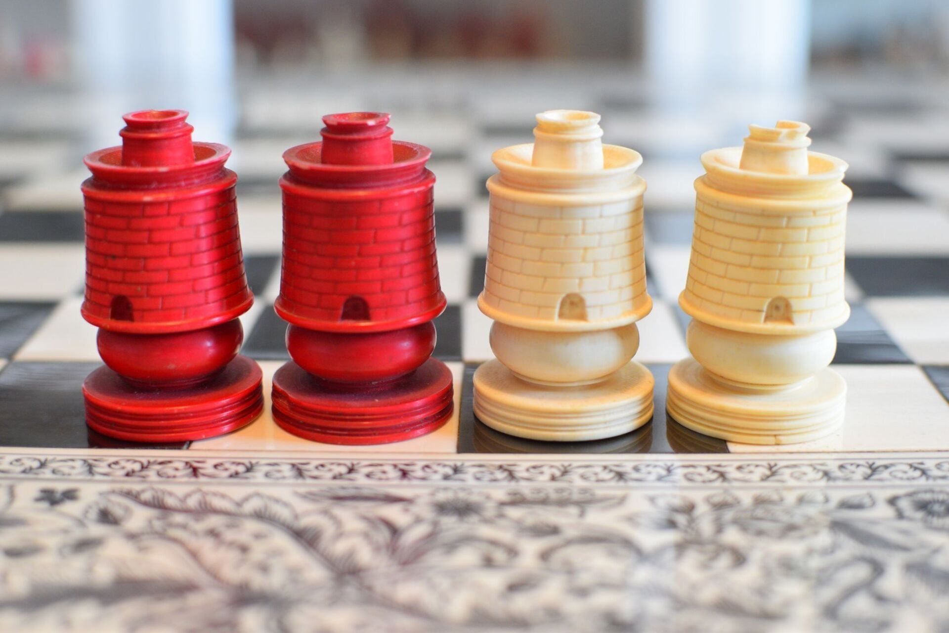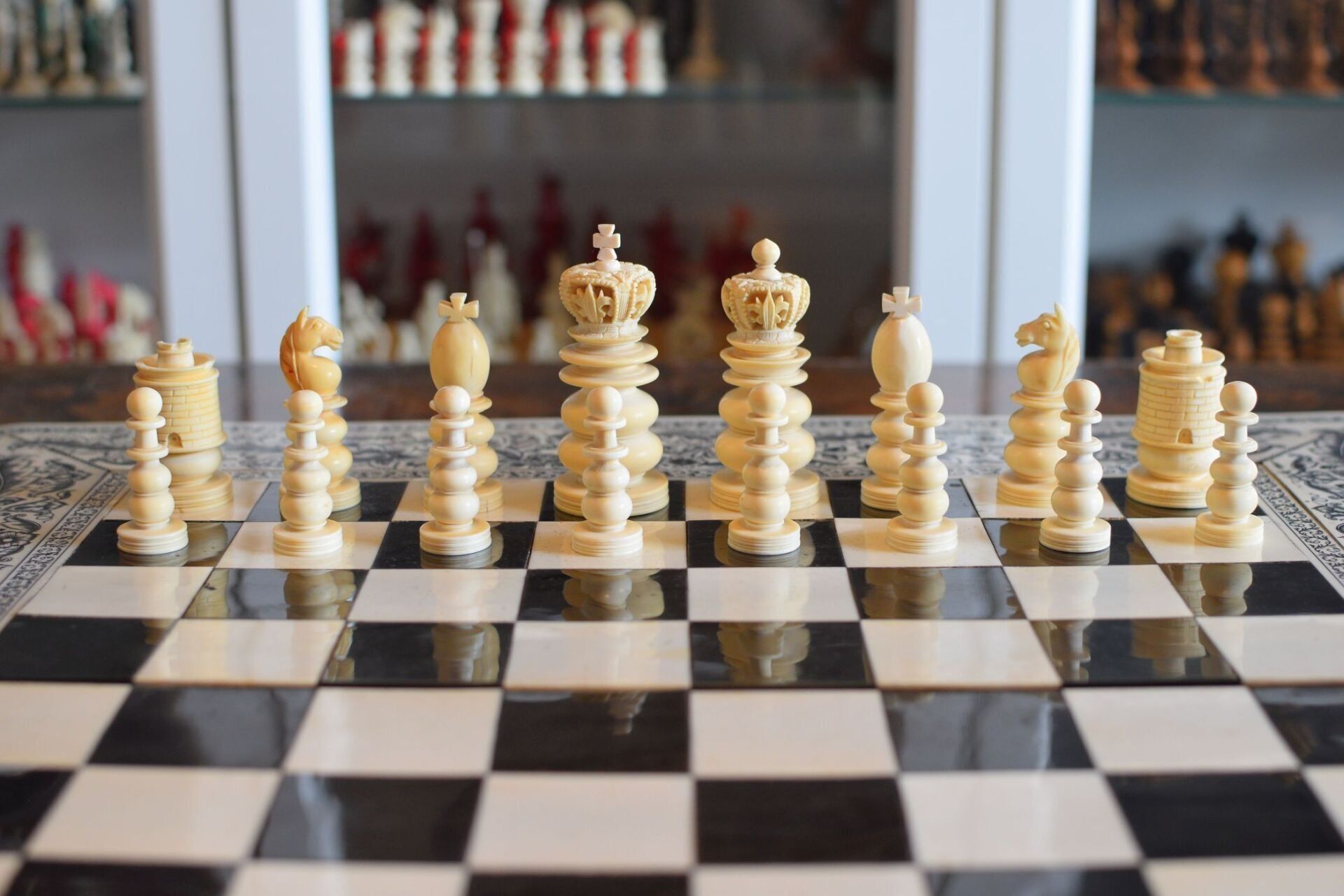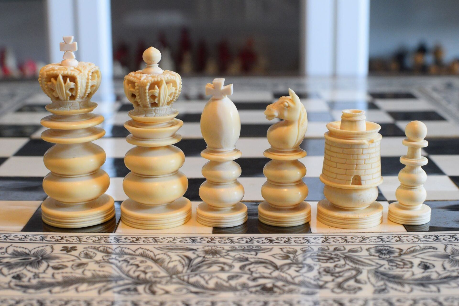 Cantonese Export Ivory Chess Set, "Burmese" Pattern, ca. 1820-1850