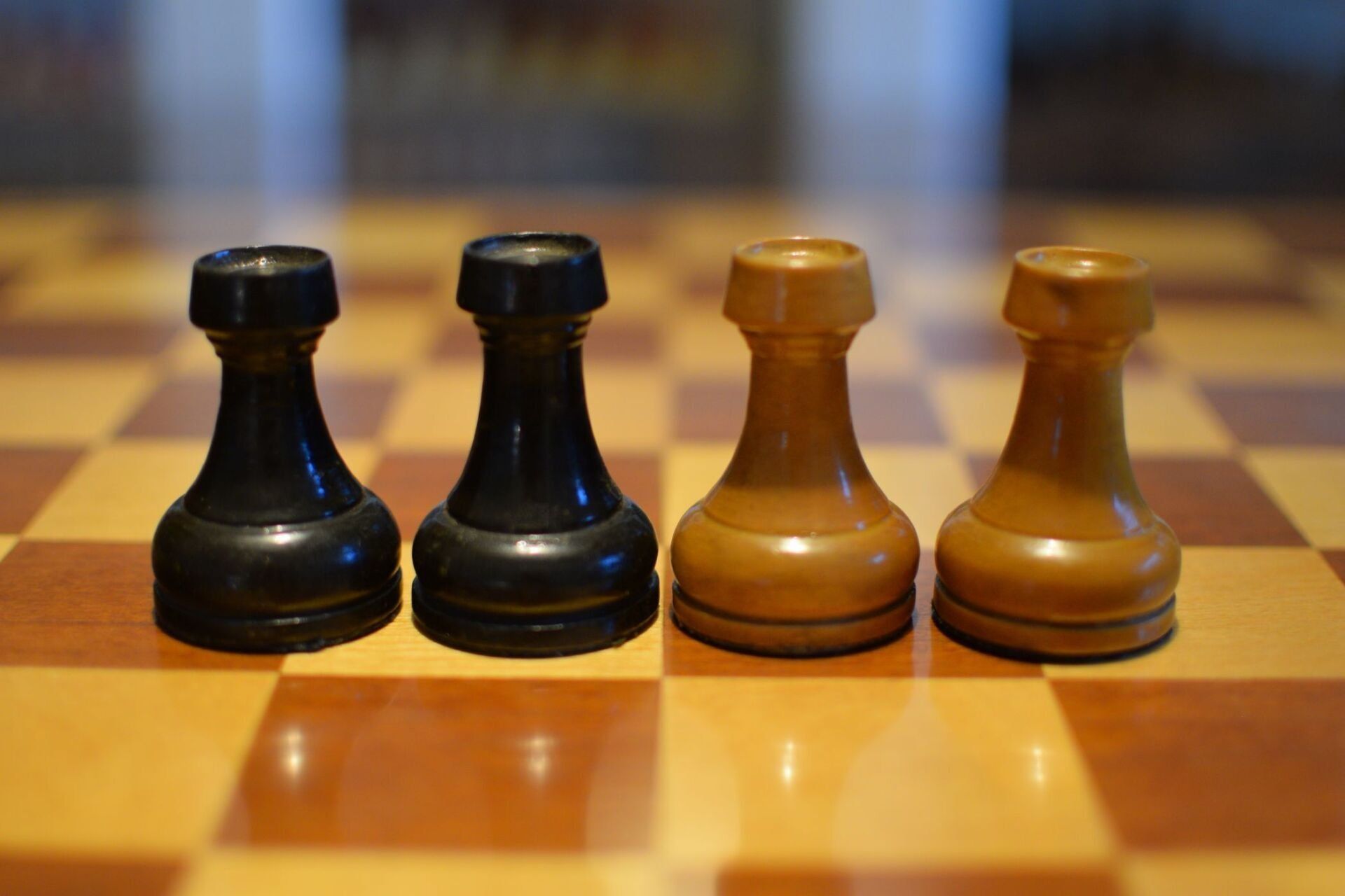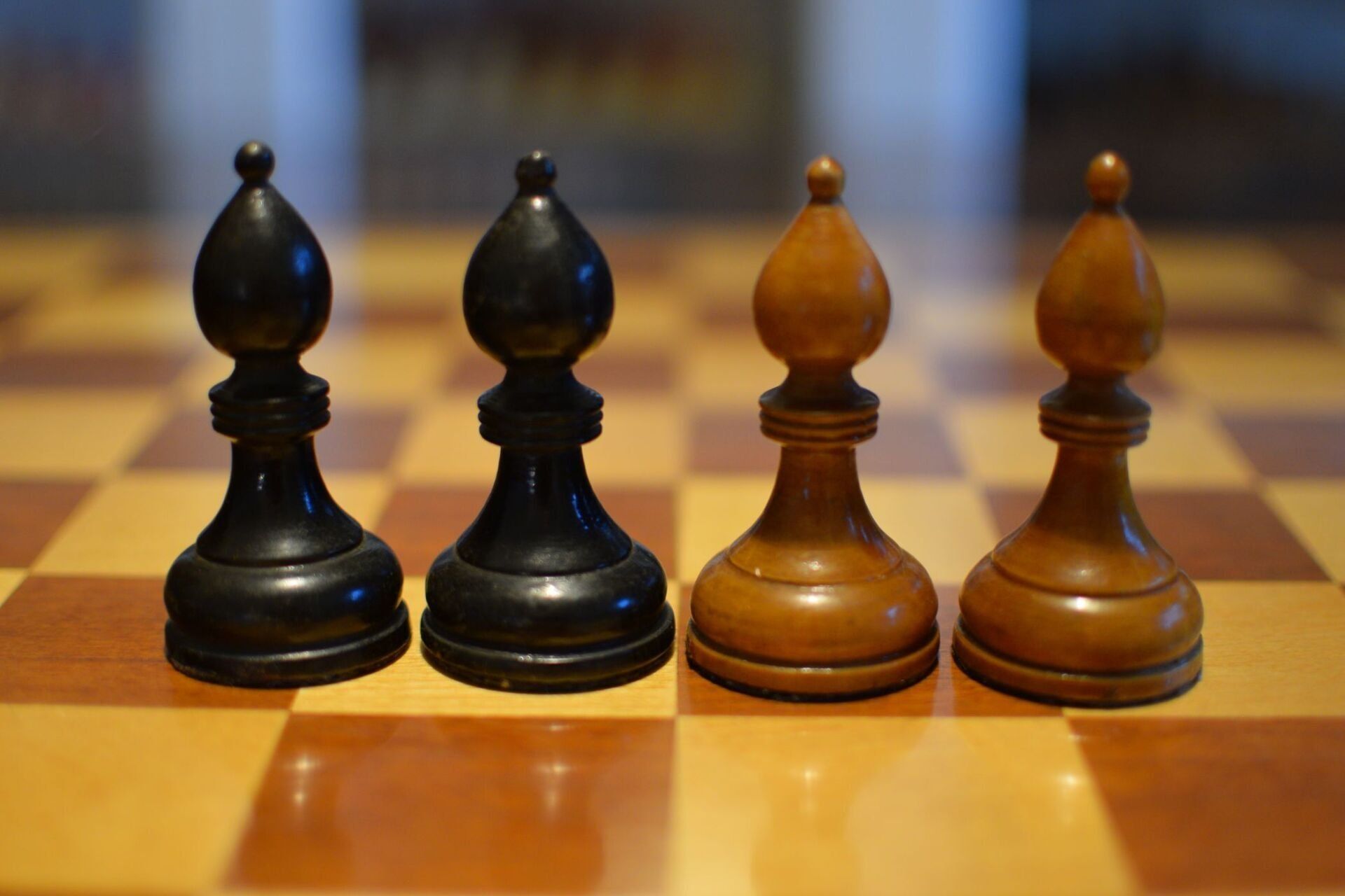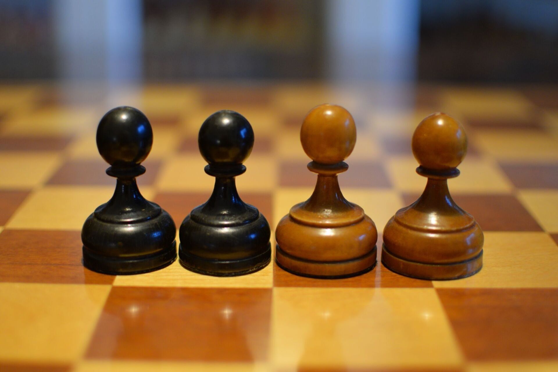 The true origin of this chess set's design seems to be a mystery. Nicholas Lanier called them "Svelte Pieces" and assumed these sets have Baltic-German roots, but it seems there is no conclusive evidence for that. Sometimes these sets are referred to as Soviet mushroom sets. What is certain is that these sets were well known in the Soviet Union. There is a famous picture by Robert Capa showing two boys playing with this type of set in a park in Moscow. The picture dates back to 1947, which makes me believe that the design is older and probably goes back to the 1930's. The set is weighted and has a king size of 10 cm.