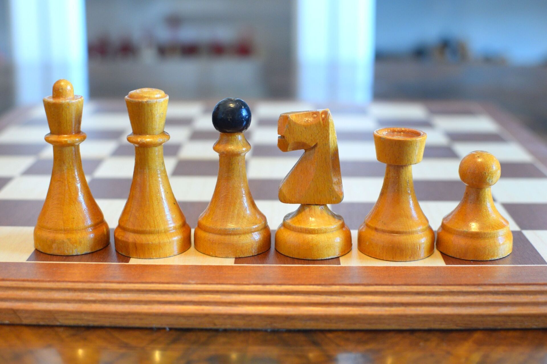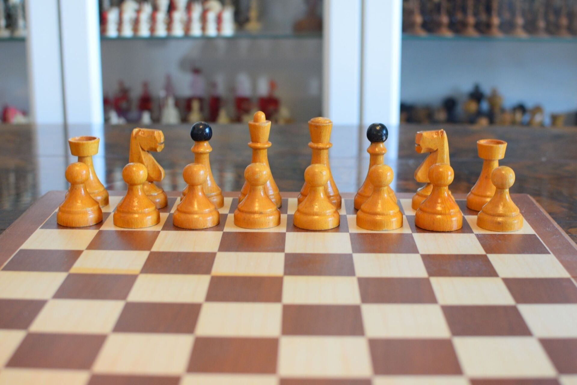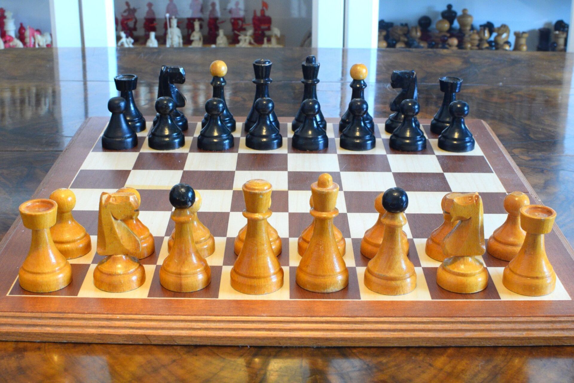 The chess pieces shown here are a variation of this set. The main difference is that the overall appearance of the set is more sturdy, with even broader bases on the pawns and thicker shafts on the pieces. The shape of the knights' heads is almost in rectangular shape. In fact, they remind me of the angular head of my beloved Airedale terrier "Jesko", which is why I labelled them "Terrier" knights.