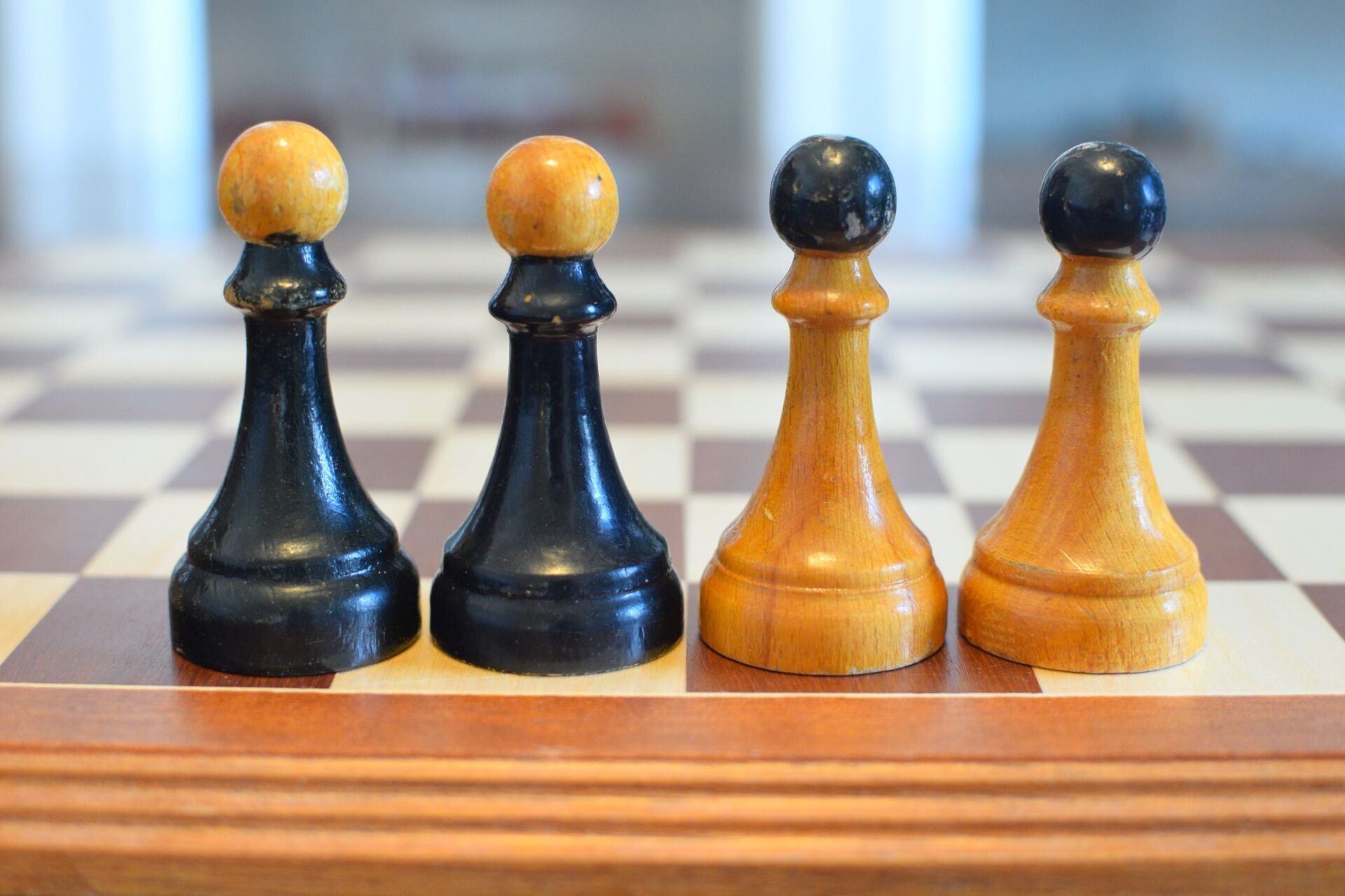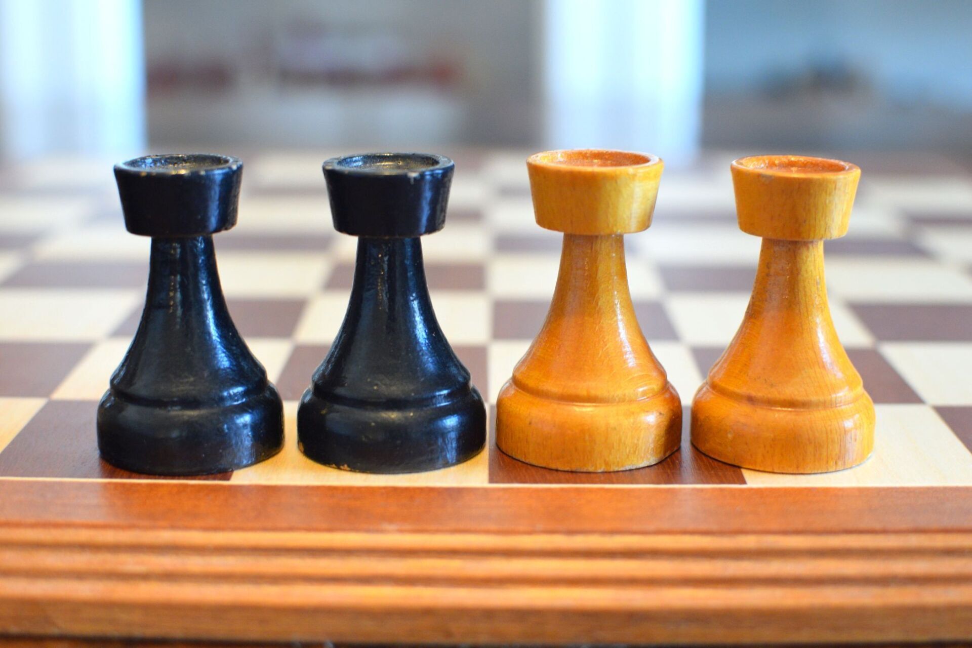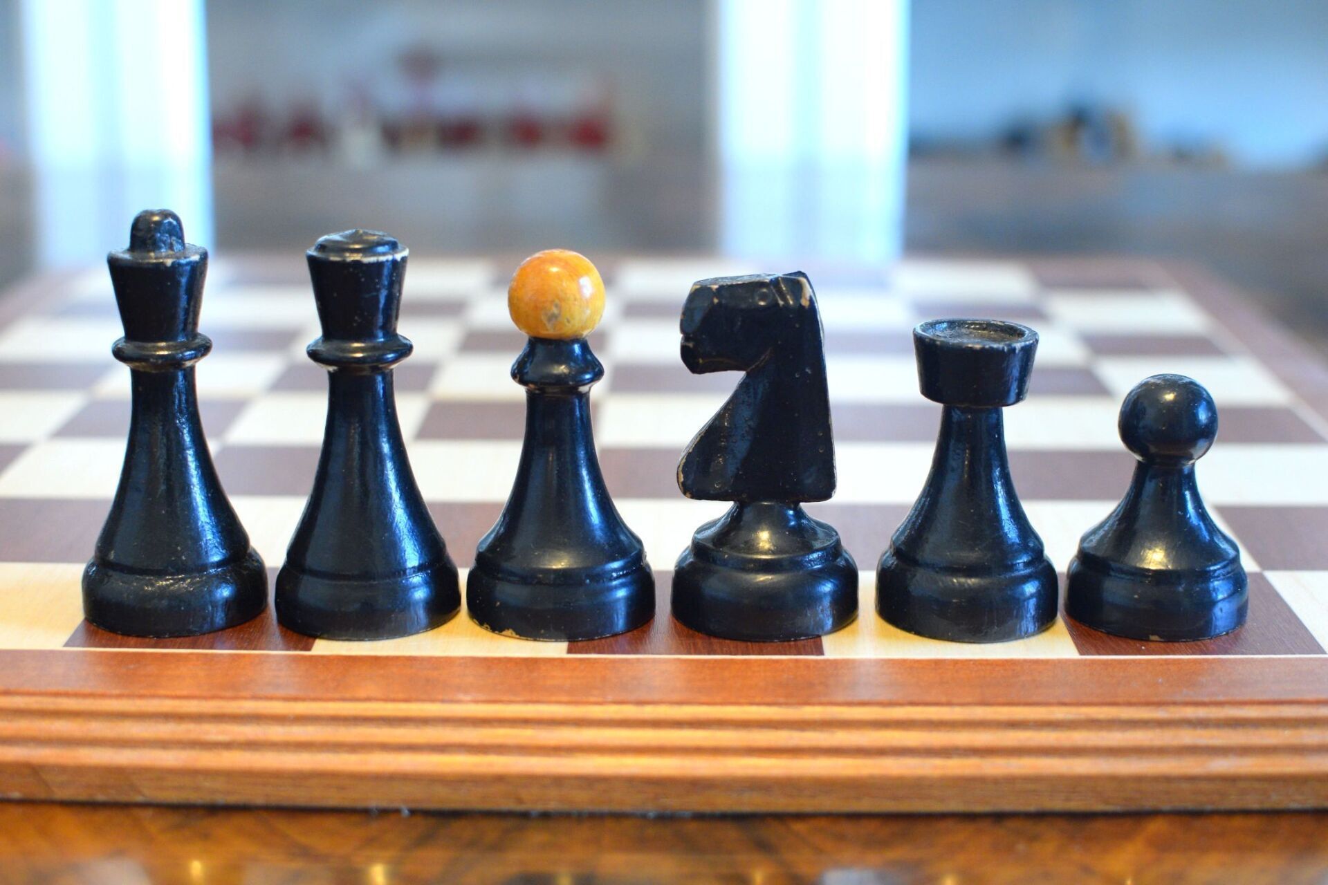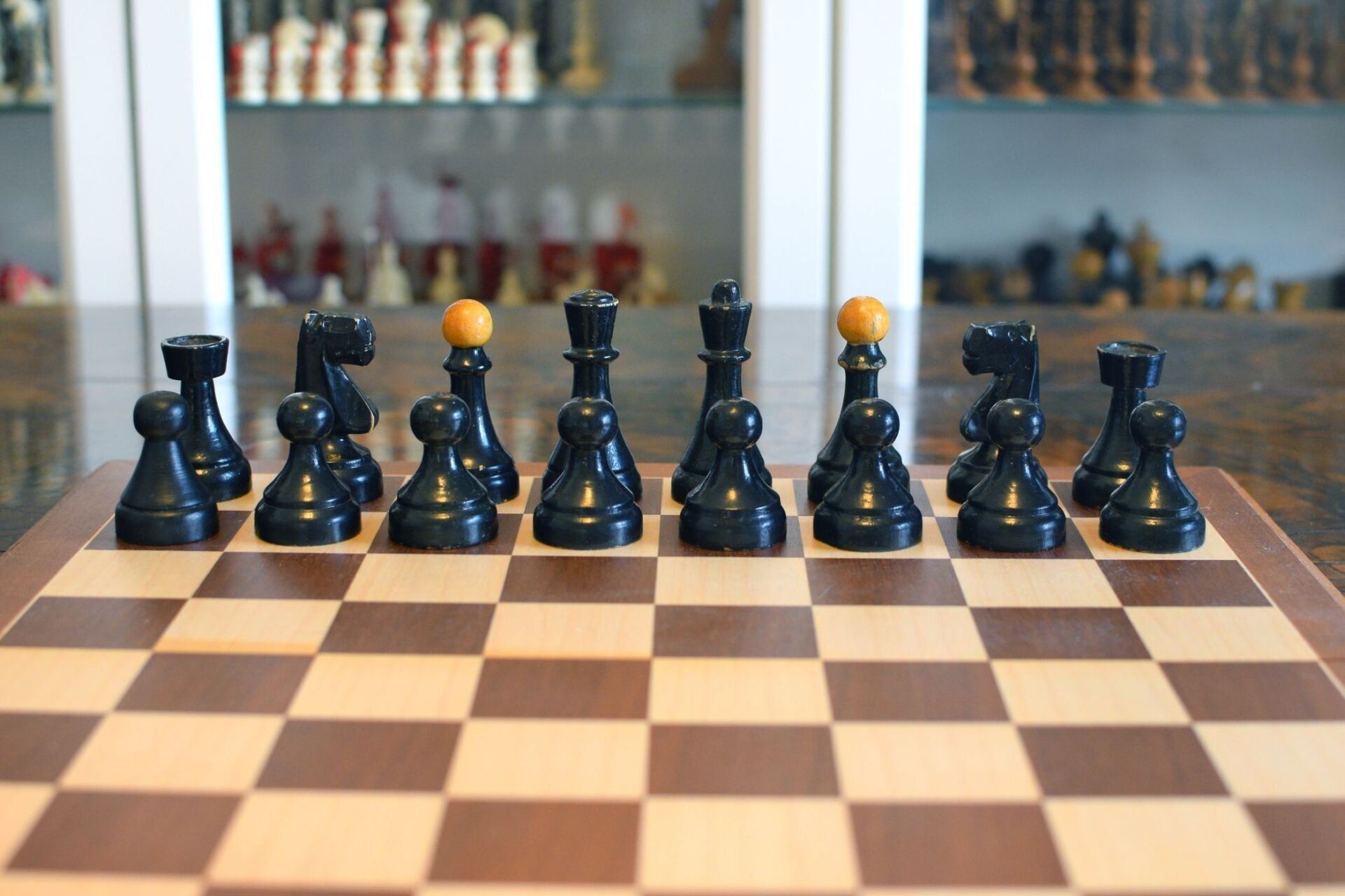 The chess pieces shown here are a variation of this set. The main difference is that the overall appearance of the set is more sturdy, with even broader bases on the pawns and thicker shafts on the pieces. The shape of the knights' heads is almost in rectangular shape. In fact, they remind me of the angular head of my beloved Airedale terrier "Jesko", which is why I labelled them "Terrier" knights.