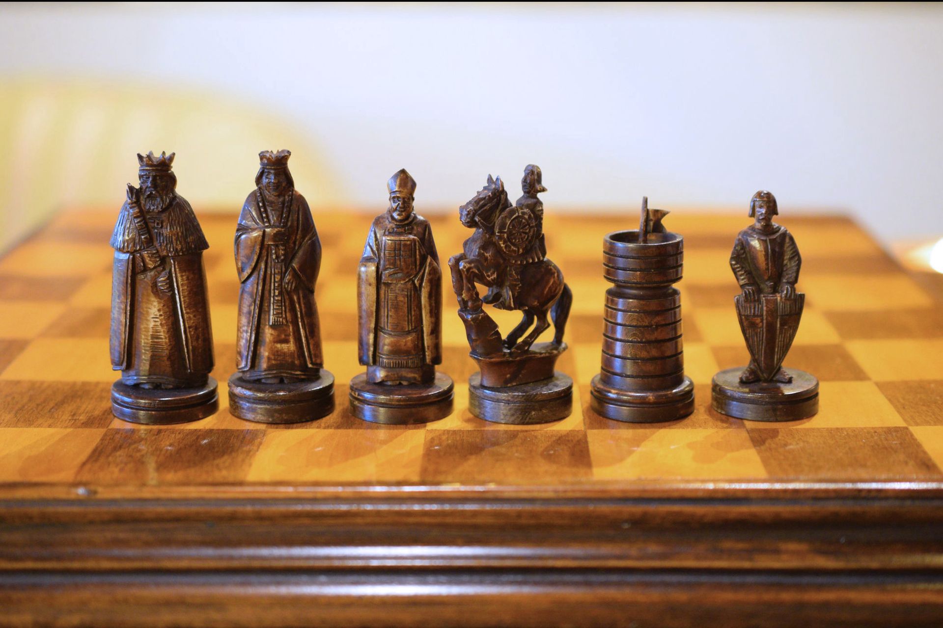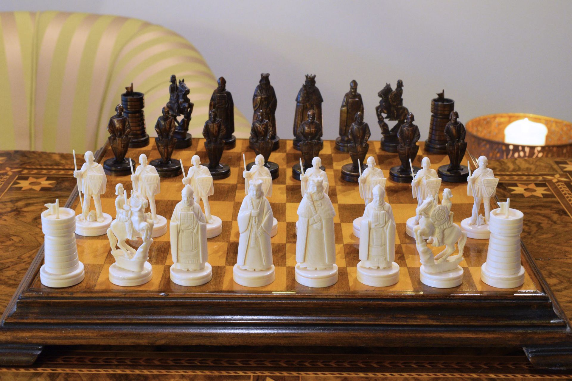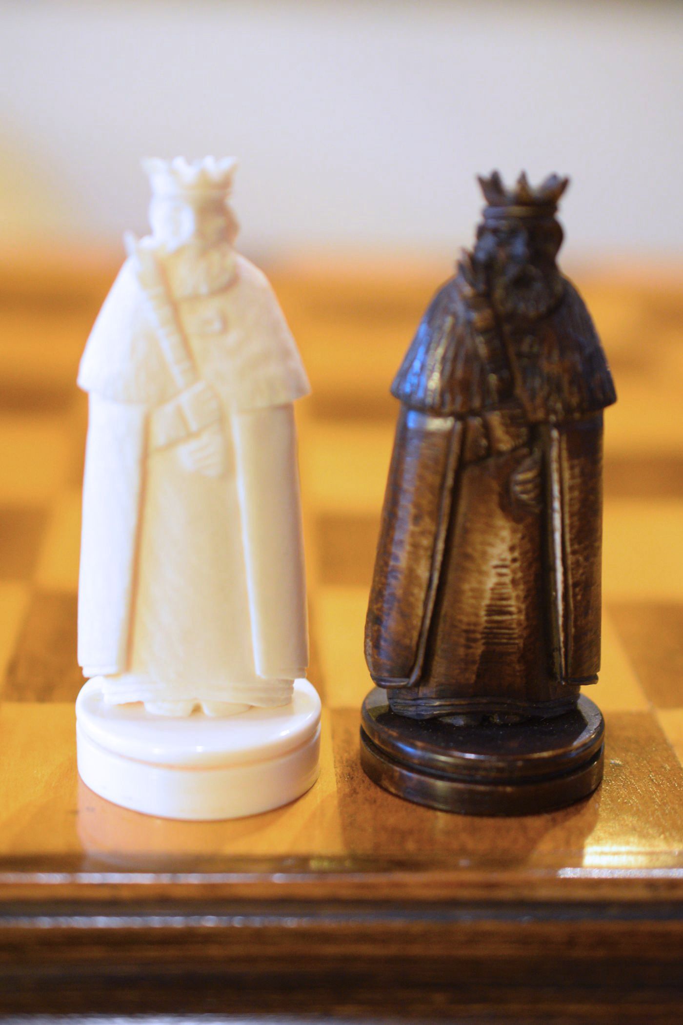 The chess set formerly belonged to the collection of Dr. Halvor Jaeger and most recently to the collection of Michael Wiltshire.