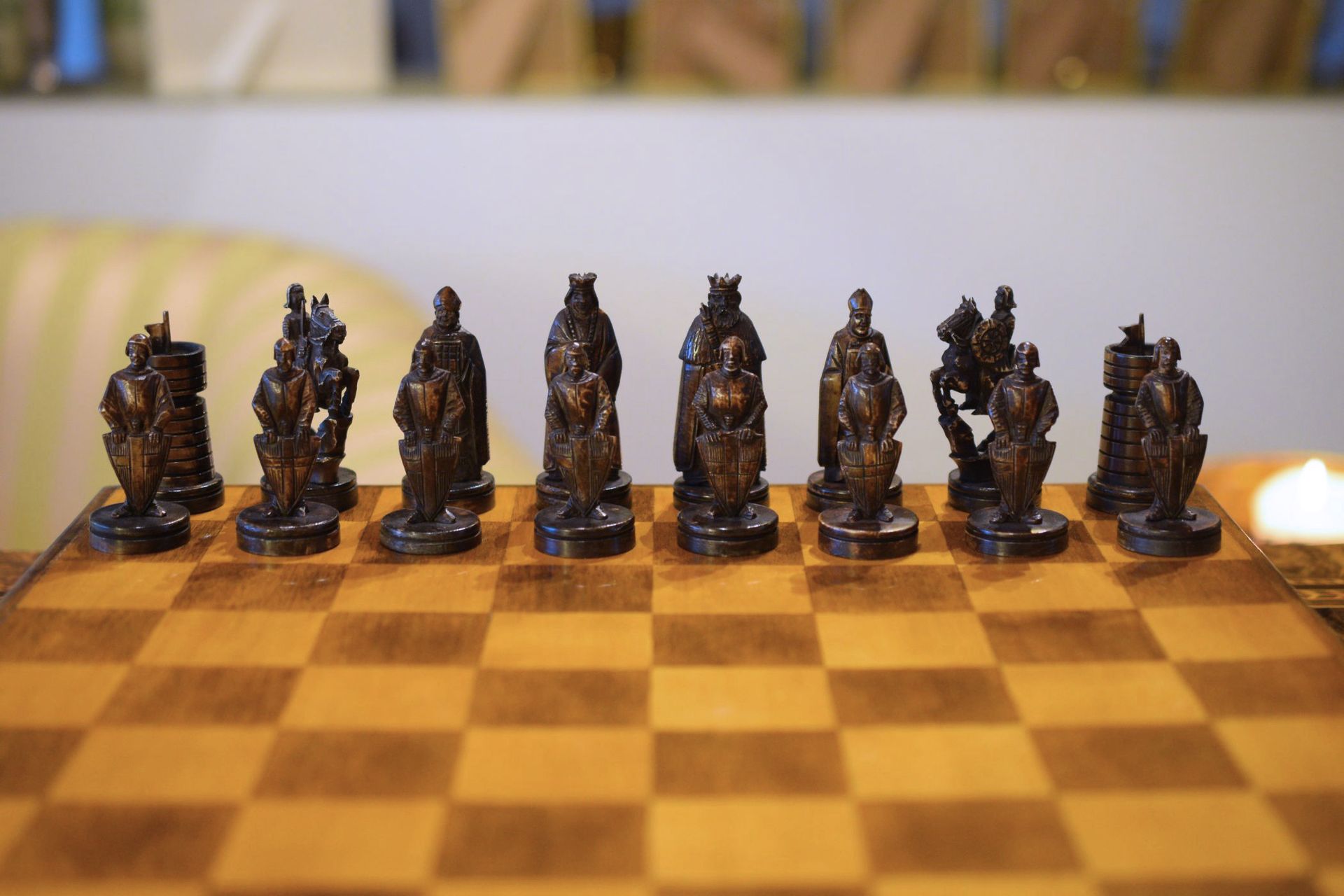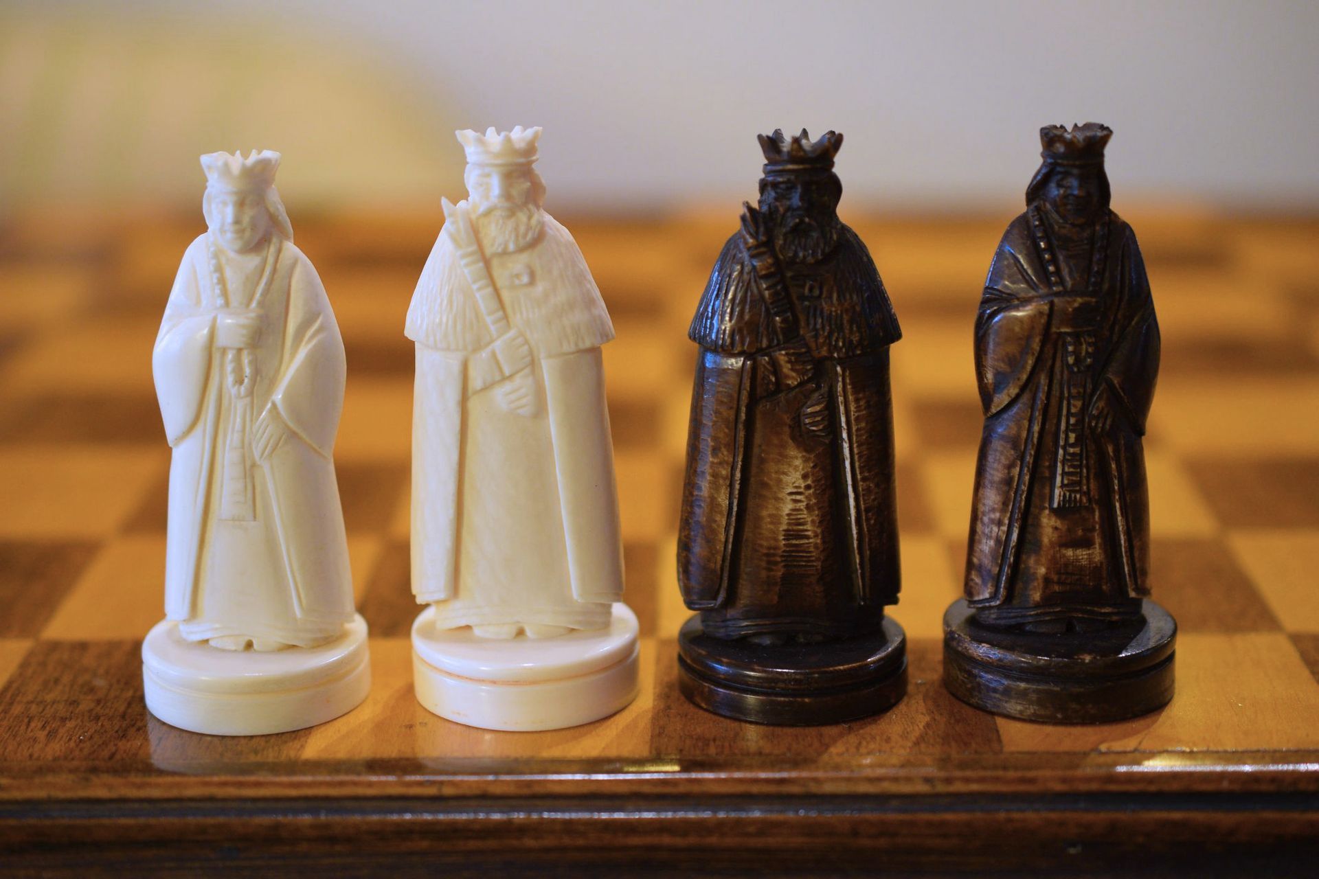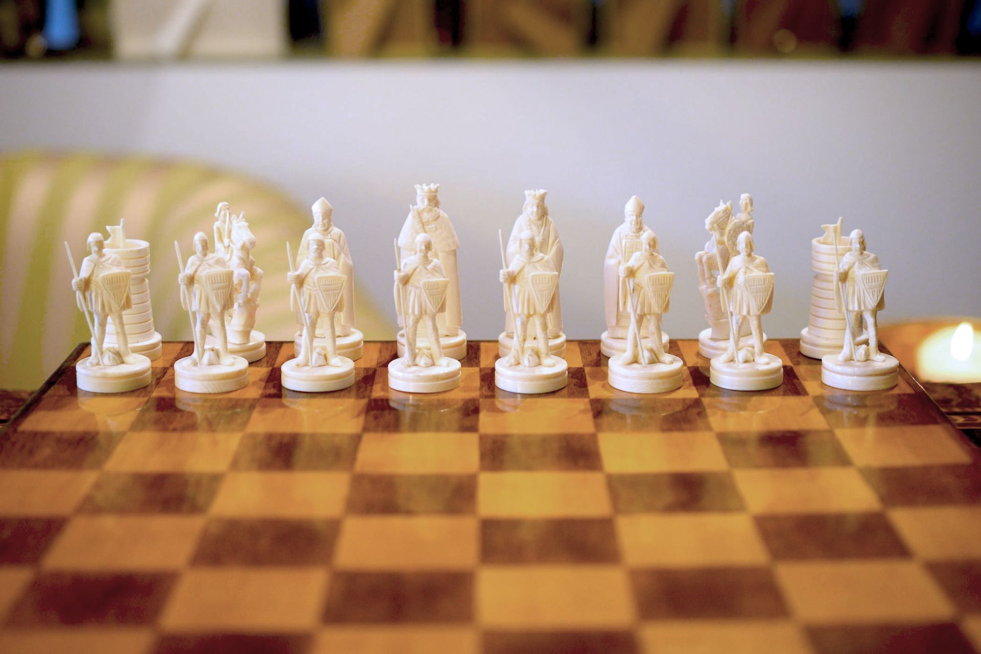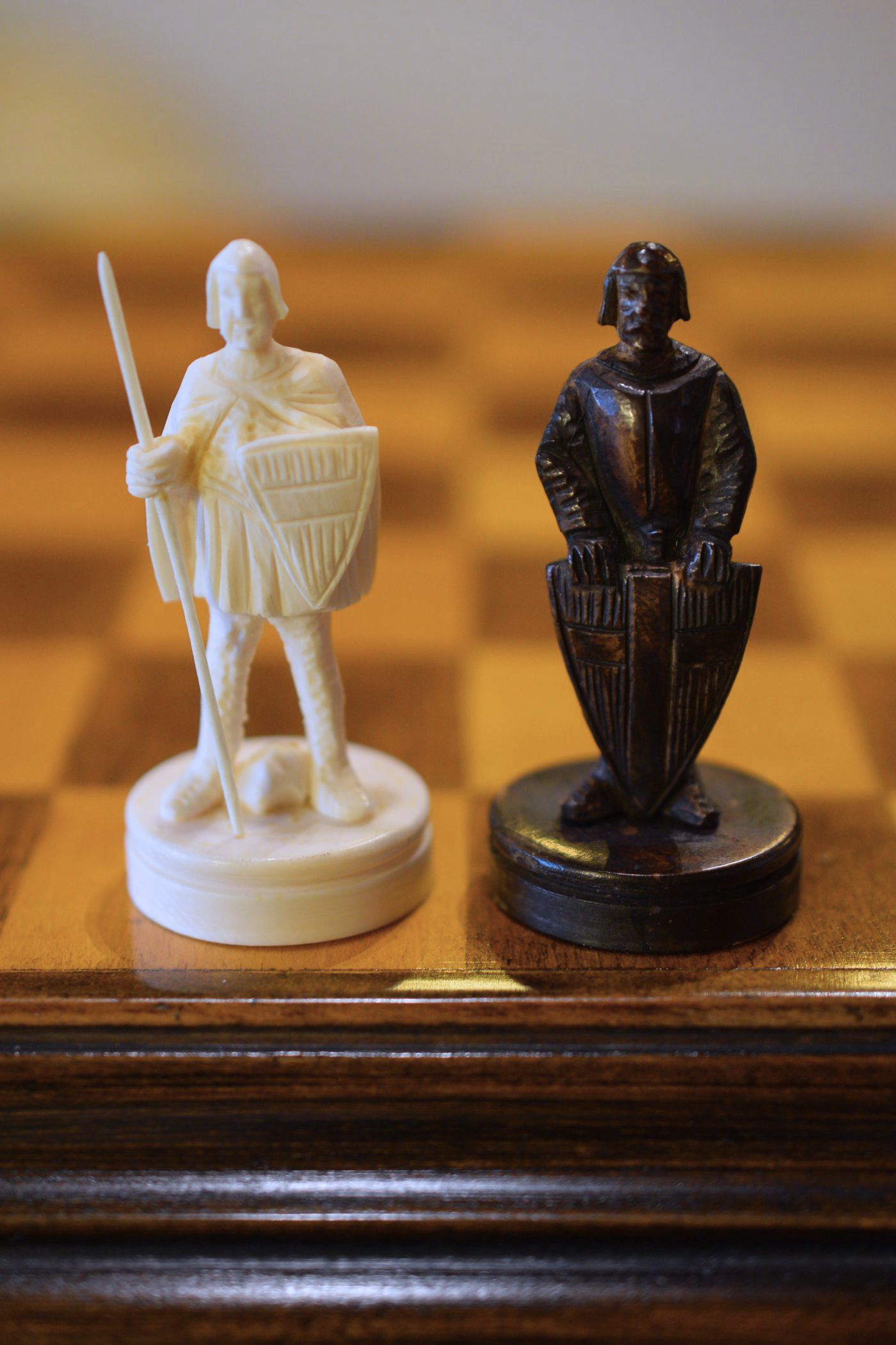 The chess set formerly belonged to the collection of Dr. Halvor Jaeger and most recently to the collection of Michael Wiltshire.