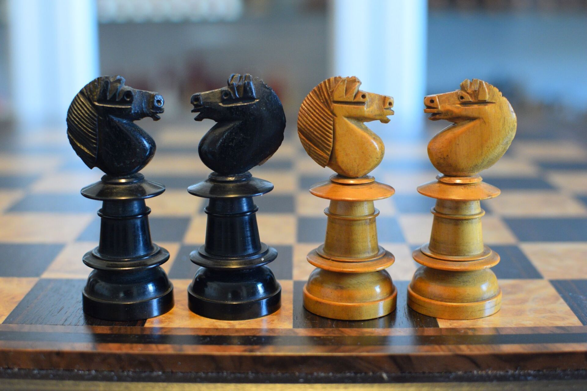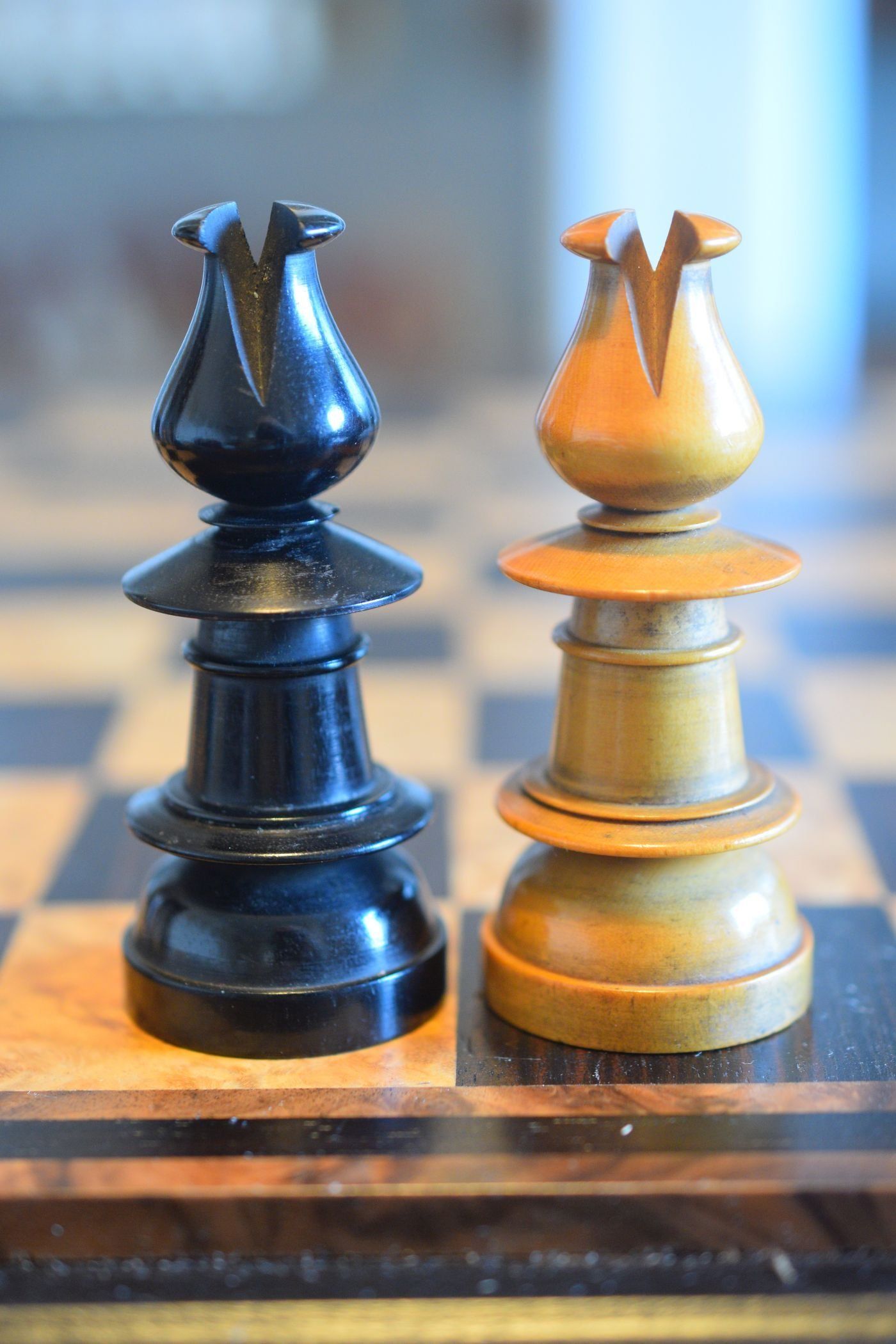 English chess set in the "Northern Upright" pattern. The design was first mentioned in connection with the Edinburgh Chess Club (hence the name "Edinburgh Upright" or "Northern Upright"), but must have spread rather early to London. According to the issue of 22 March 1835 of Bell's Life in London, the first London workshops to offer this type of chessmen were apparently the workshop of Dorothy Calvert in 189 Fleet Street and the workshop of Thomas Sherwin in 67 Great Queen Street (an address under which Sherwin first appears in 1826). Peter Armit published a very nice article on "Uprights" in The Chess Collector Magazine, Vol. XXIX No. 3 (November 2020), showing many wonderful examples of this design, which clearly ranks among my personal favorites.