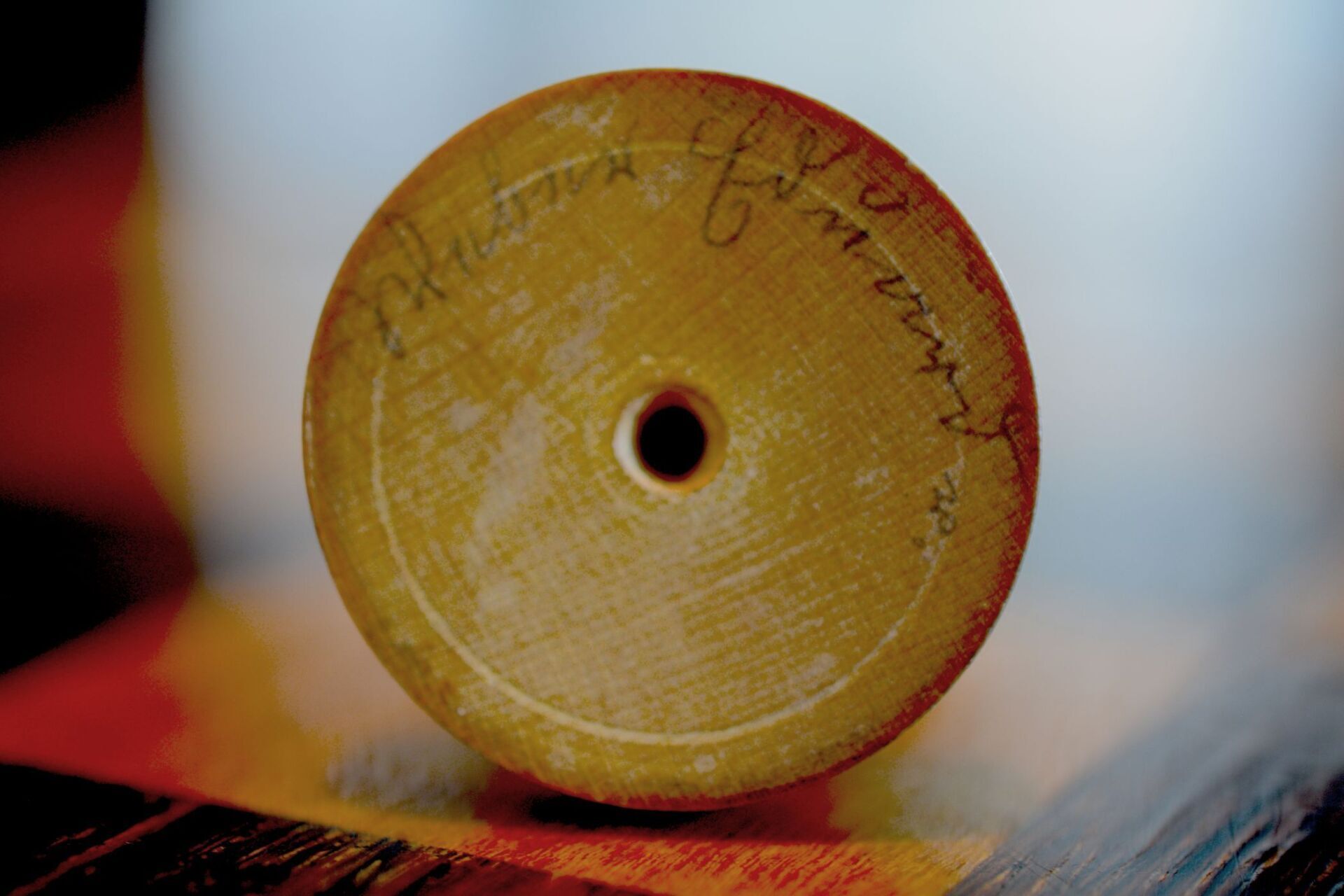 The similarity with sets of the Biedermeier period might lead to the conclusion that this set was made sometime in the first half of the 19th century, but this assumptions is in this case unjustified. Several pieces have pencil inscriptions written on the bases in Kurrent, which is also known as "German script" or "German cursive". Two of these inscriptions show the date 15 March 1882 ("15. März 82" and "1882 / 5. März"). Further, the same pieces are inscribed with a name, which to me reads "Eduard Kleber" or in the inverted version with the last name first "Kleber Eduard".