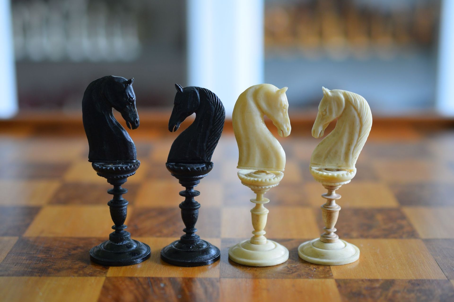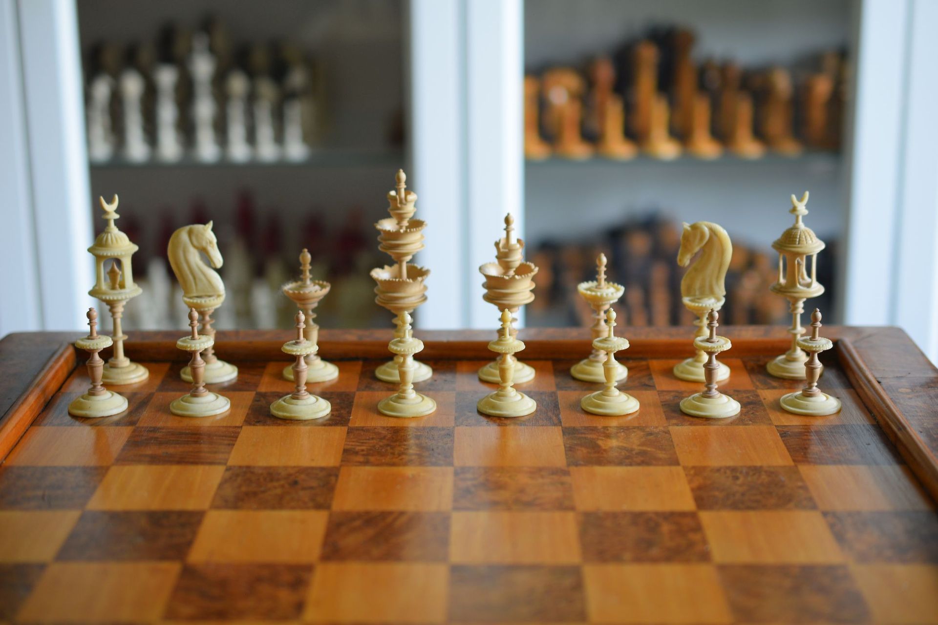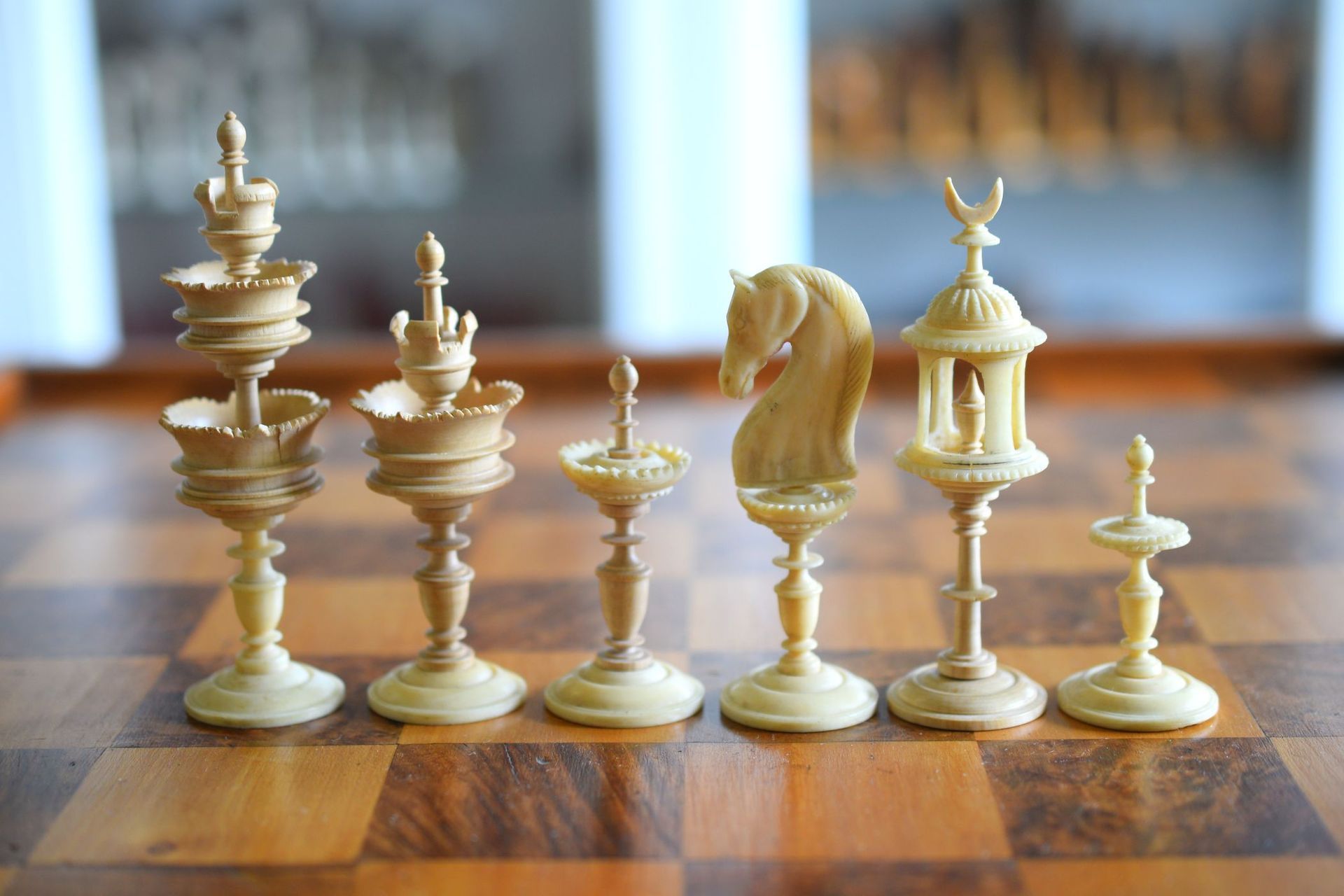 German Bone & Wood Chess Set, "Selenus" Pattern, ca. 1830-1860