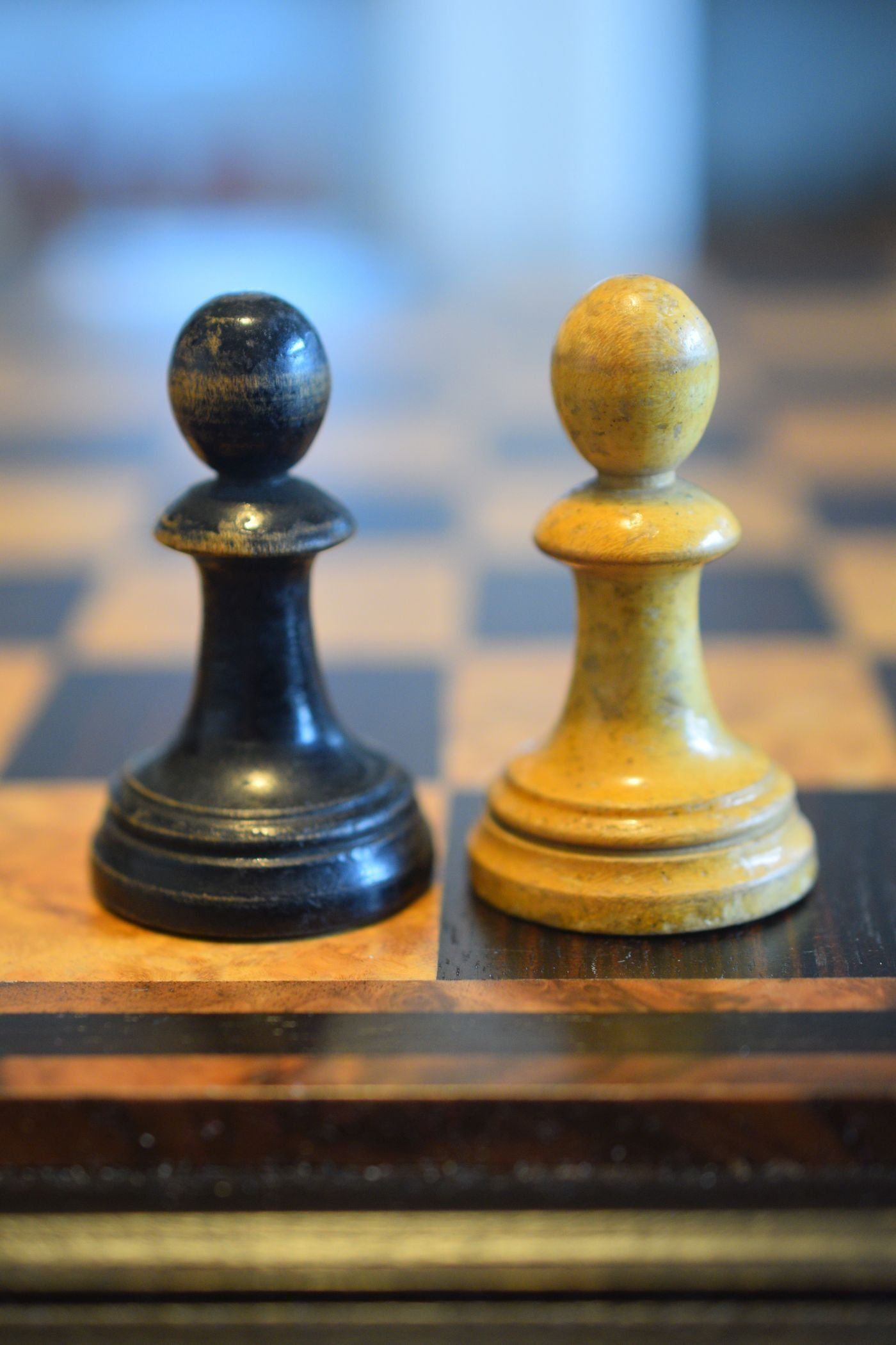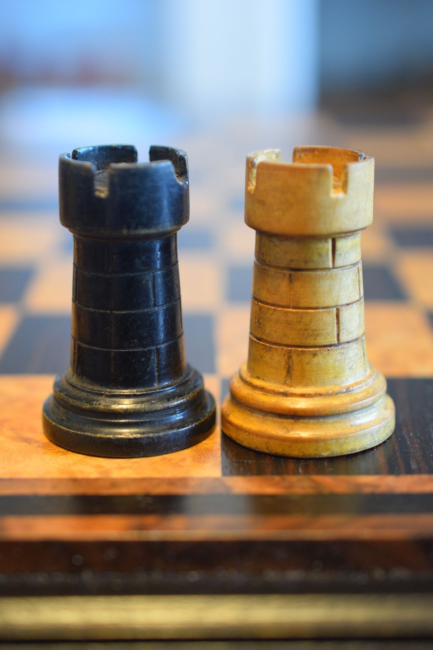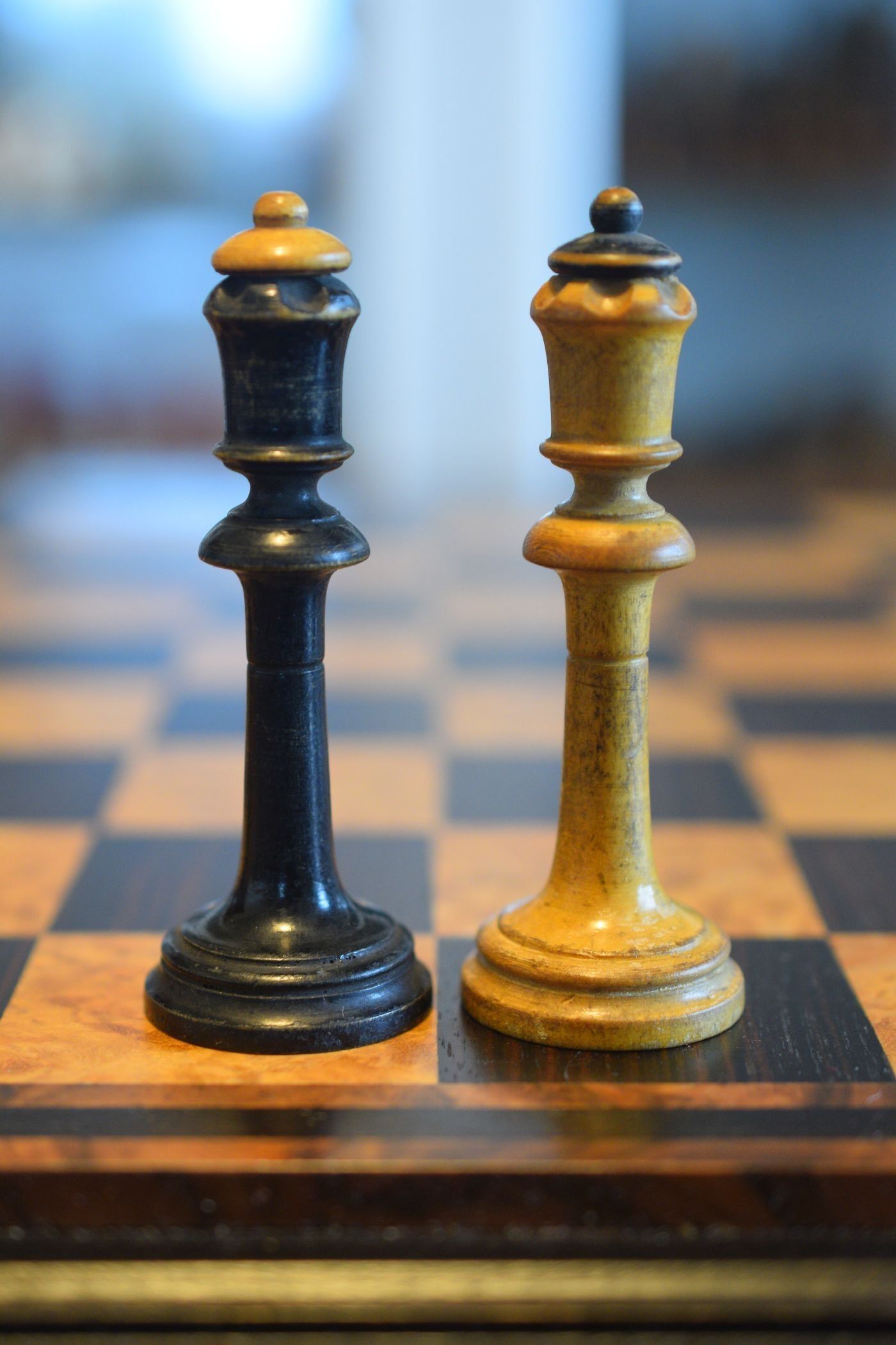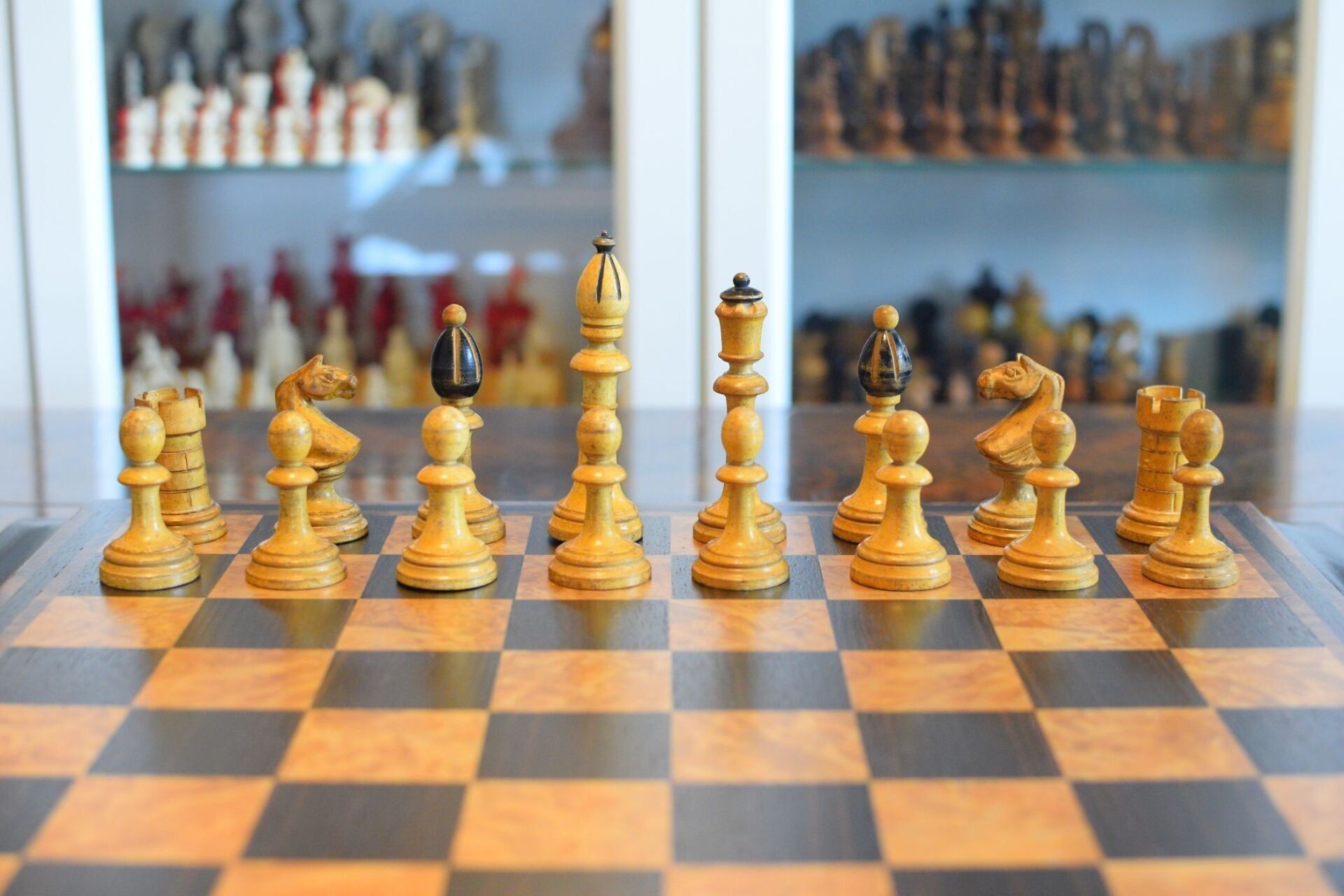 The chess pieces are made of wood, one side lacquered in black. The king height is 98 mm. The pieces are weighted, even though most of the weights fell out and were lost over the decades. A similar set can be seen as exhibit 1 on the ČESKÁ KLUBOVKA website.