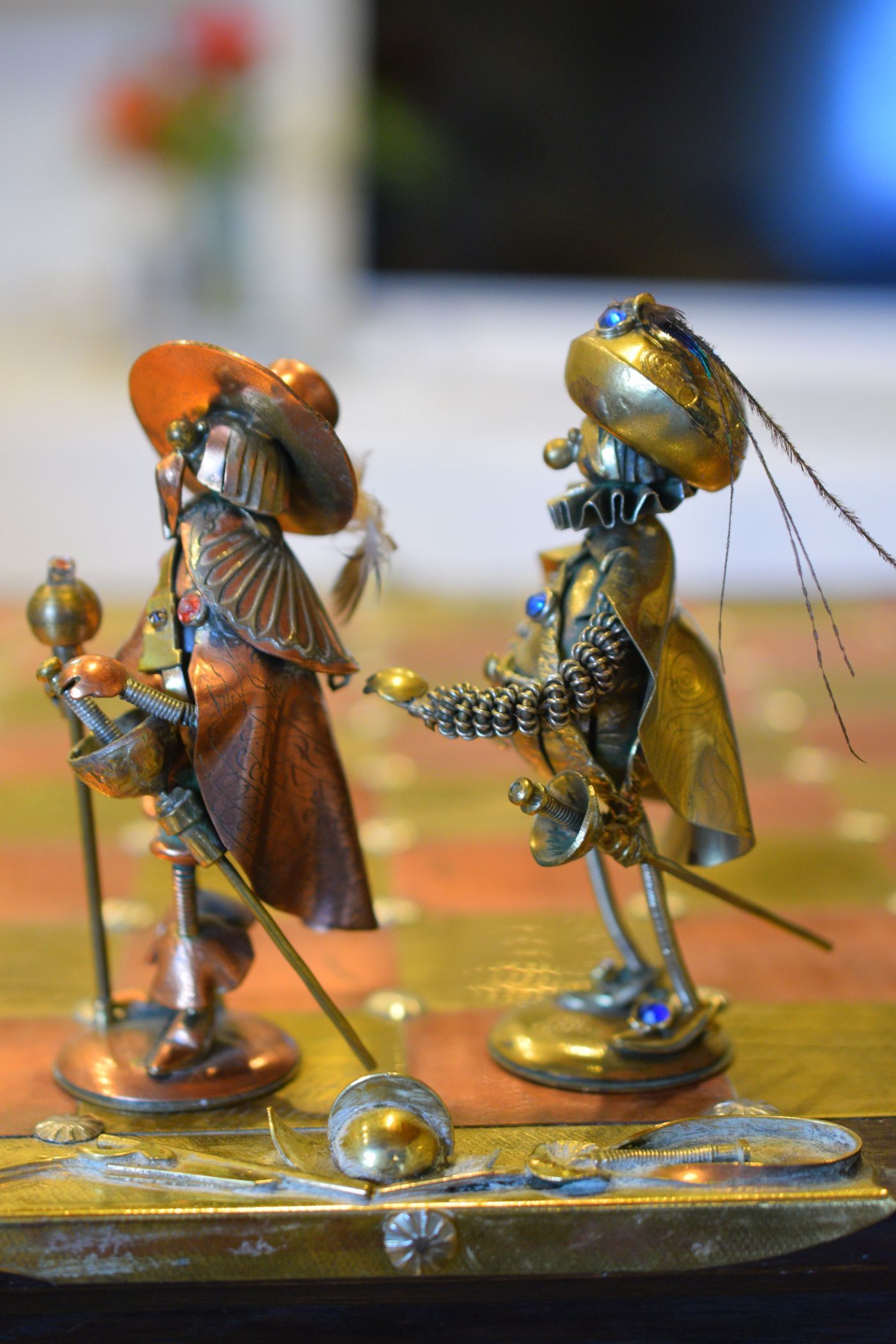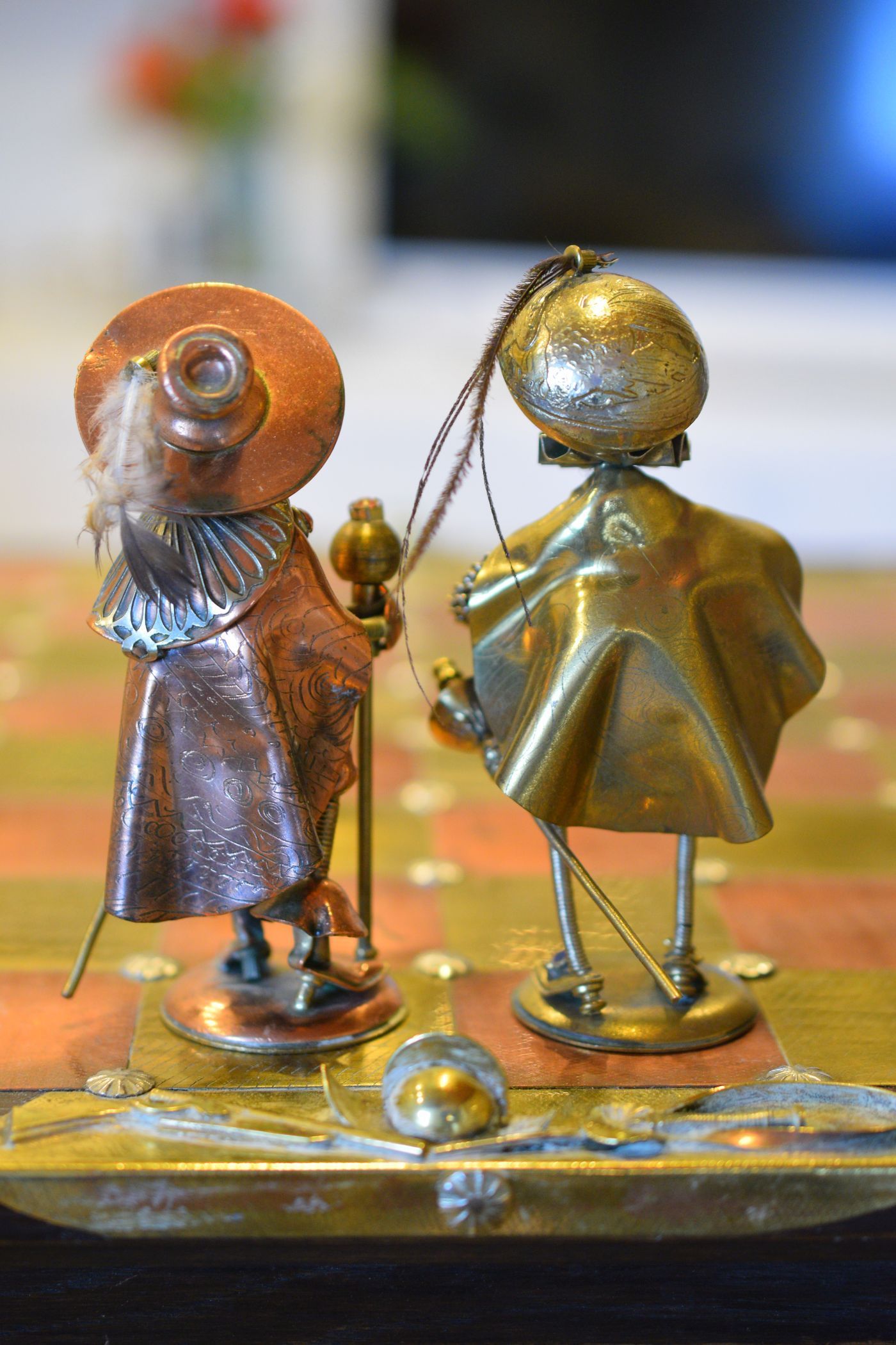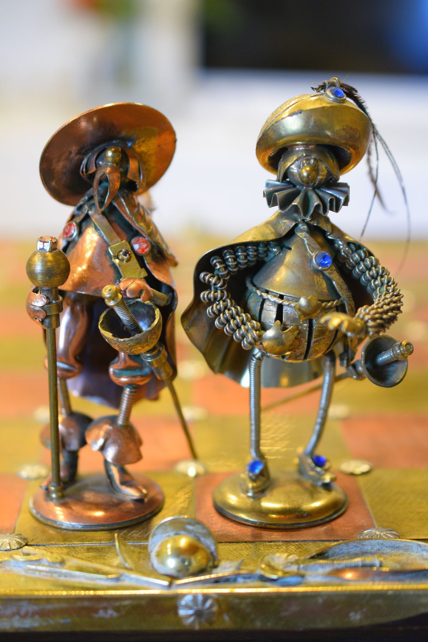 Andrzej Jerzy Nowakowscy was born on October 2, 1938 in Lublin, Poland. He graduated from the State High School of Visual Arts in Warsaw, which he attended from 1953 to 1957. He finished with very high marks in artistic subjects including drawing, painting and sculpture. In the years 1957 to 1966 he devoted himself exclusively to watercolor and oil paintings and the drawing of sketches and comics. The latter is reflected in his later work, as can be seen here. During this period, he started experimenting with artistic metalworks, which became his love and passion for the rest of his life. Initially he made jewellery, i.e. rings, bracelets, brooches and necklaces, but he soon developed what became the hallmark of his entire artistic work: unique figurines.